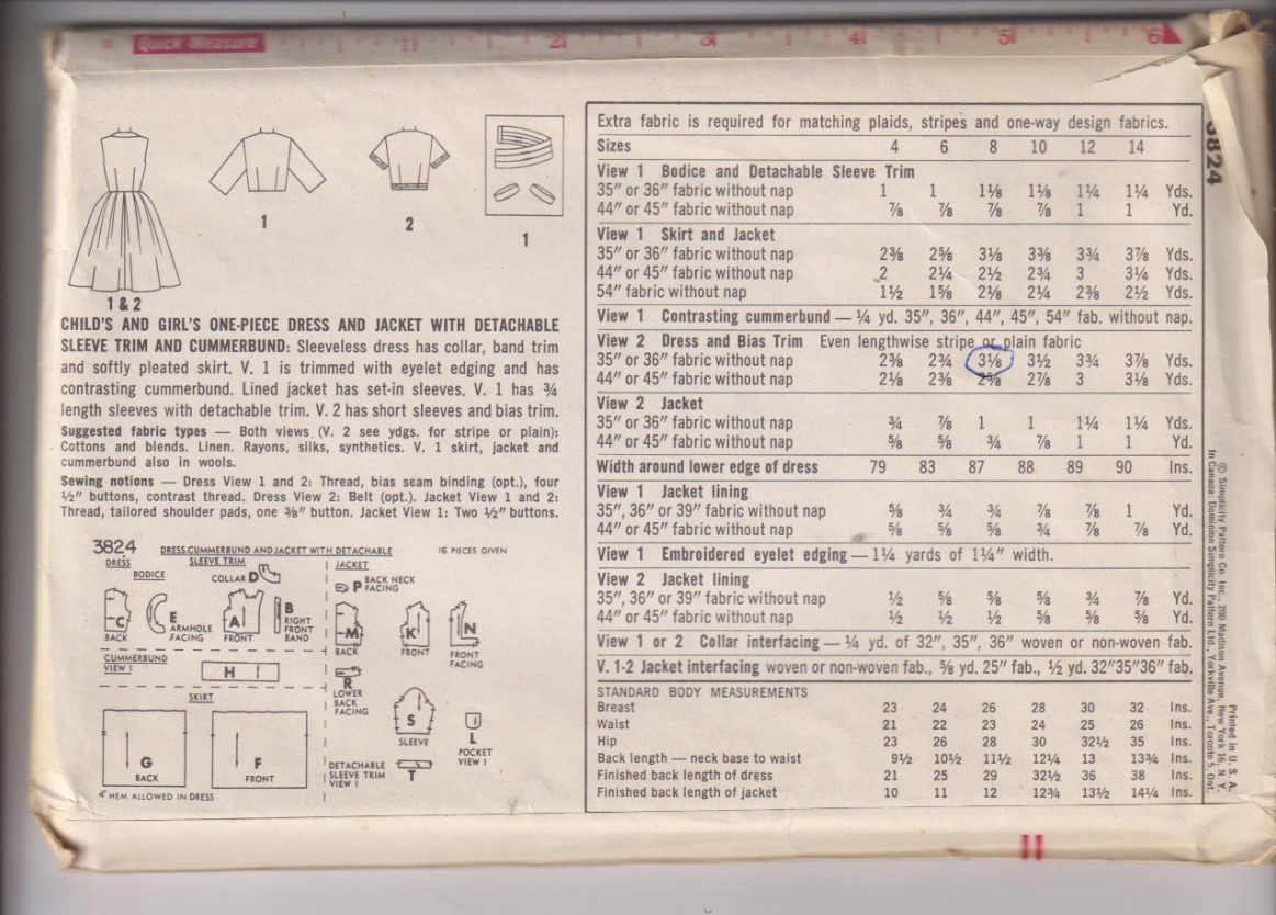 • 3824 SIMPLICITY c.1961 - DRESS JACKET w CUMMERBUND - GIRLS Sz 8