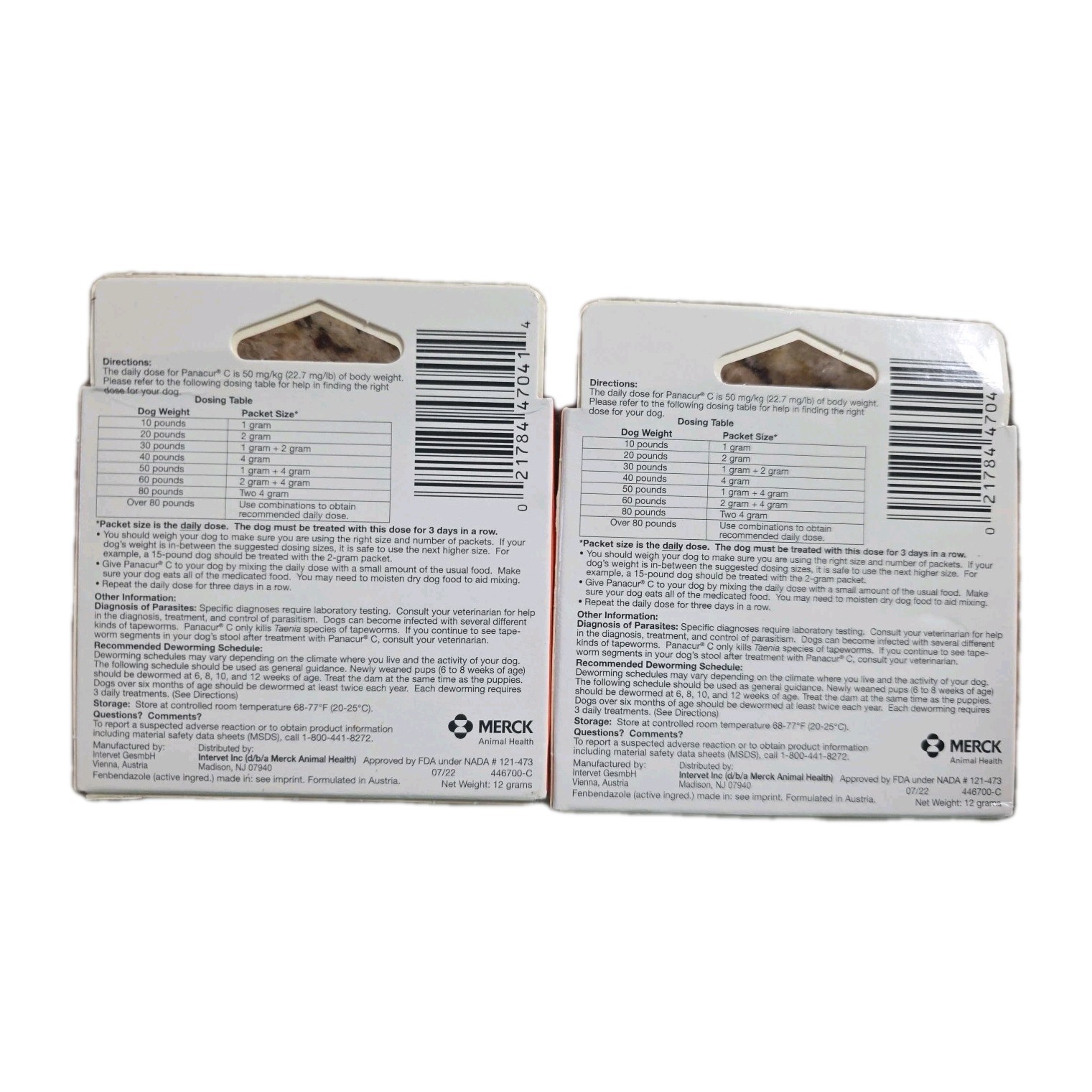 2 Packs Panacur C 4 gram Canine 40lbs Dewormer Treatment -6 packets total- New