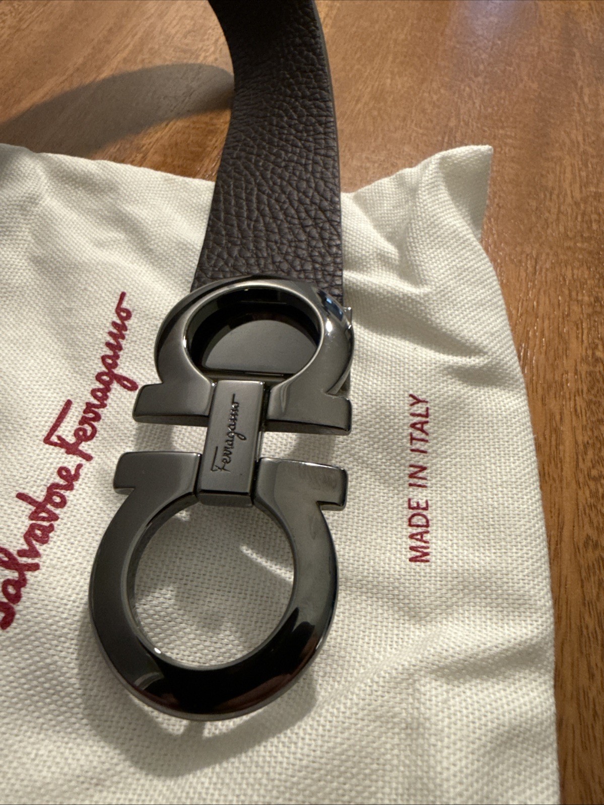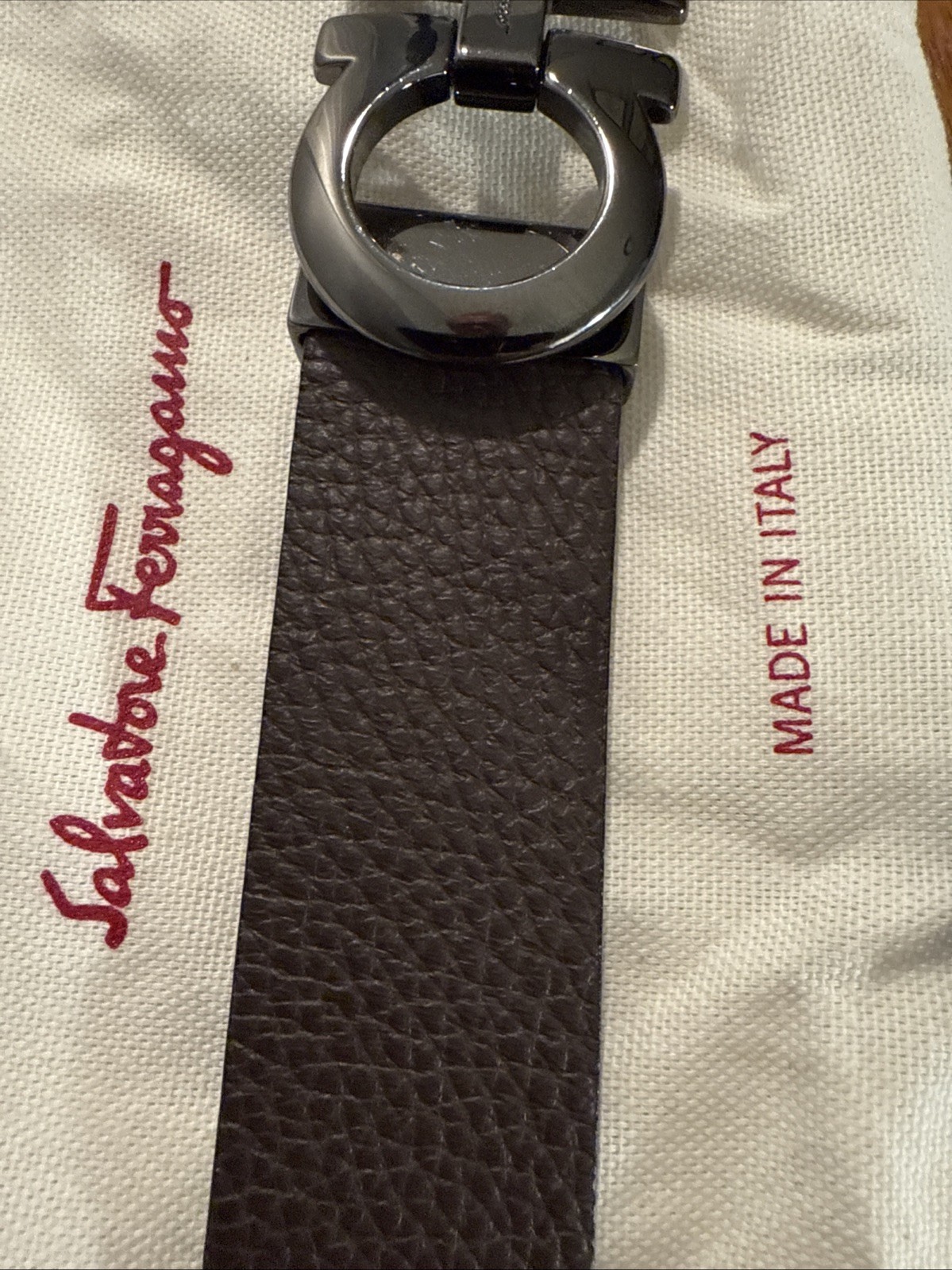 как выглядит Salvatore Ferragamo Men s Reversible Double Gancini Belt Pebbled Brown Black фото