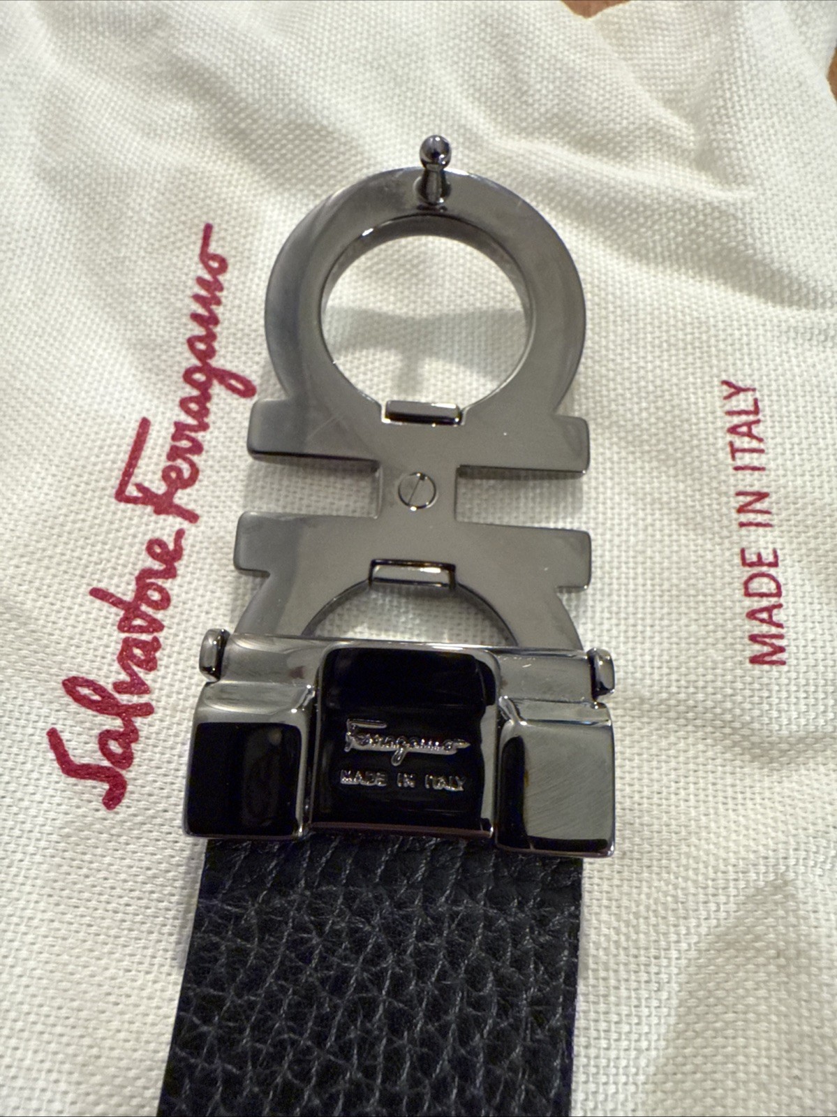 Salvatore Ferragamo Men s Reversible Double Gancini Belt Pebbled Brown Black