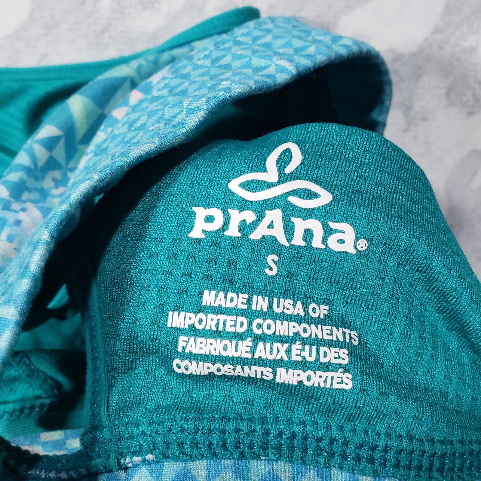 как выглядит PrAna Sports Bra Womens Small Blue Geo Print Outdoors фото