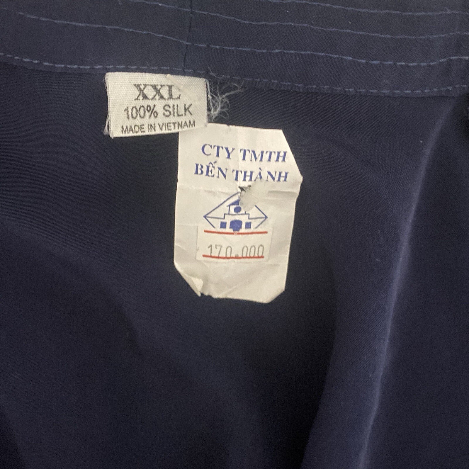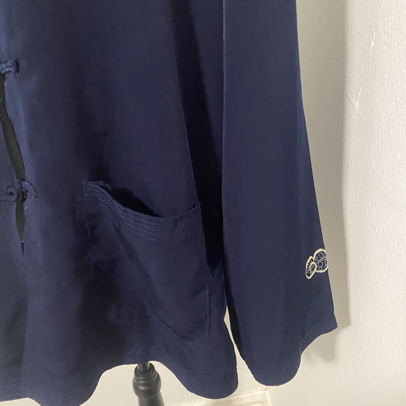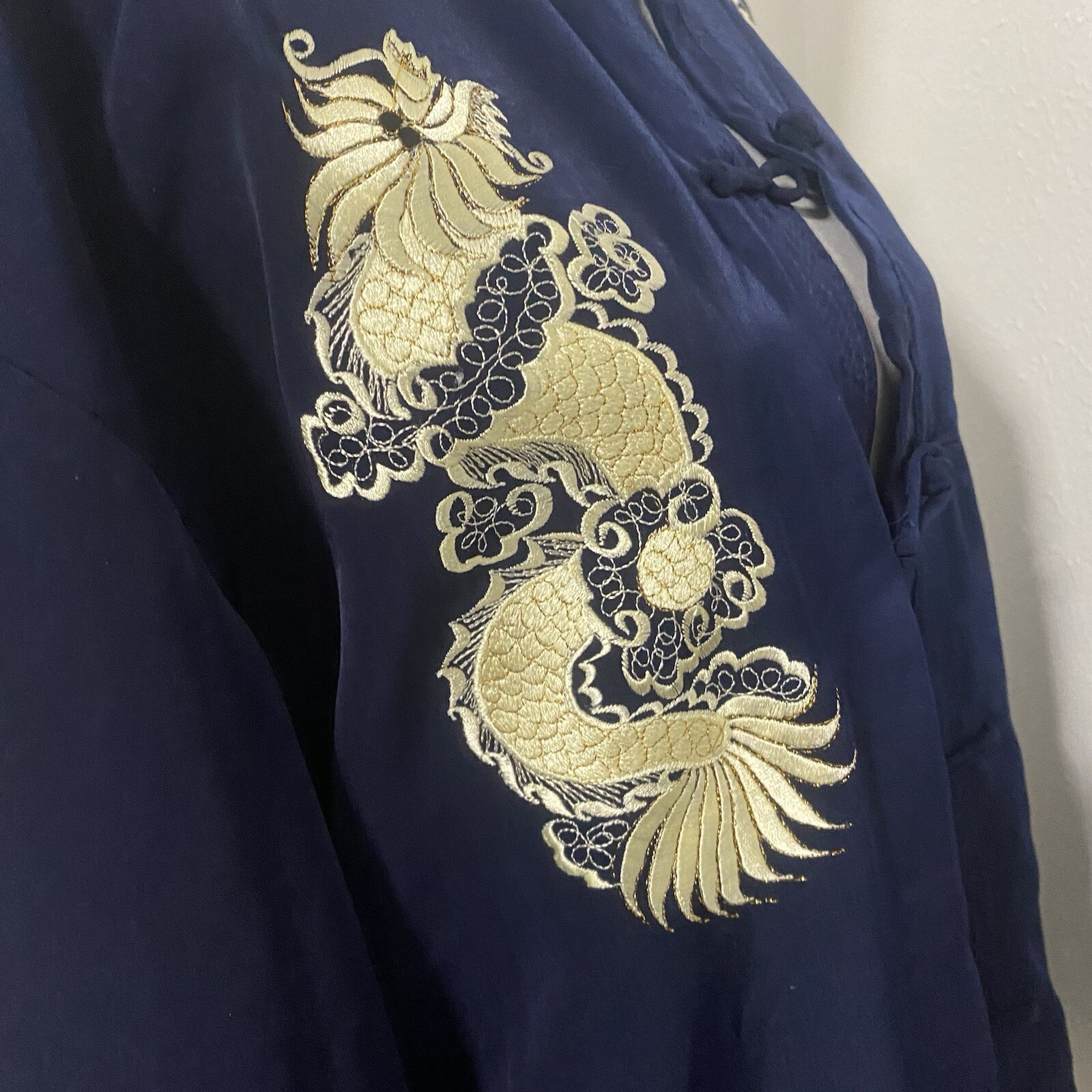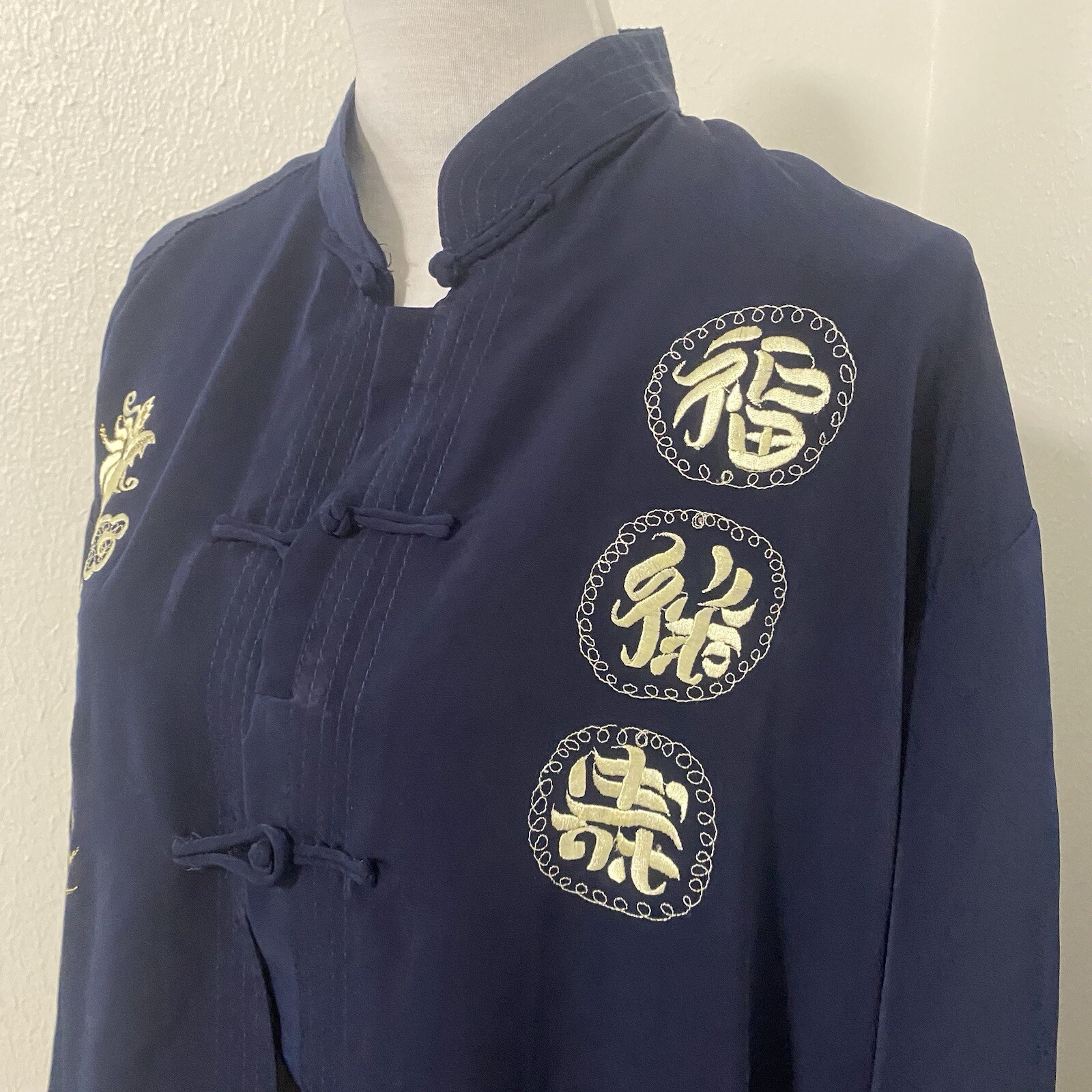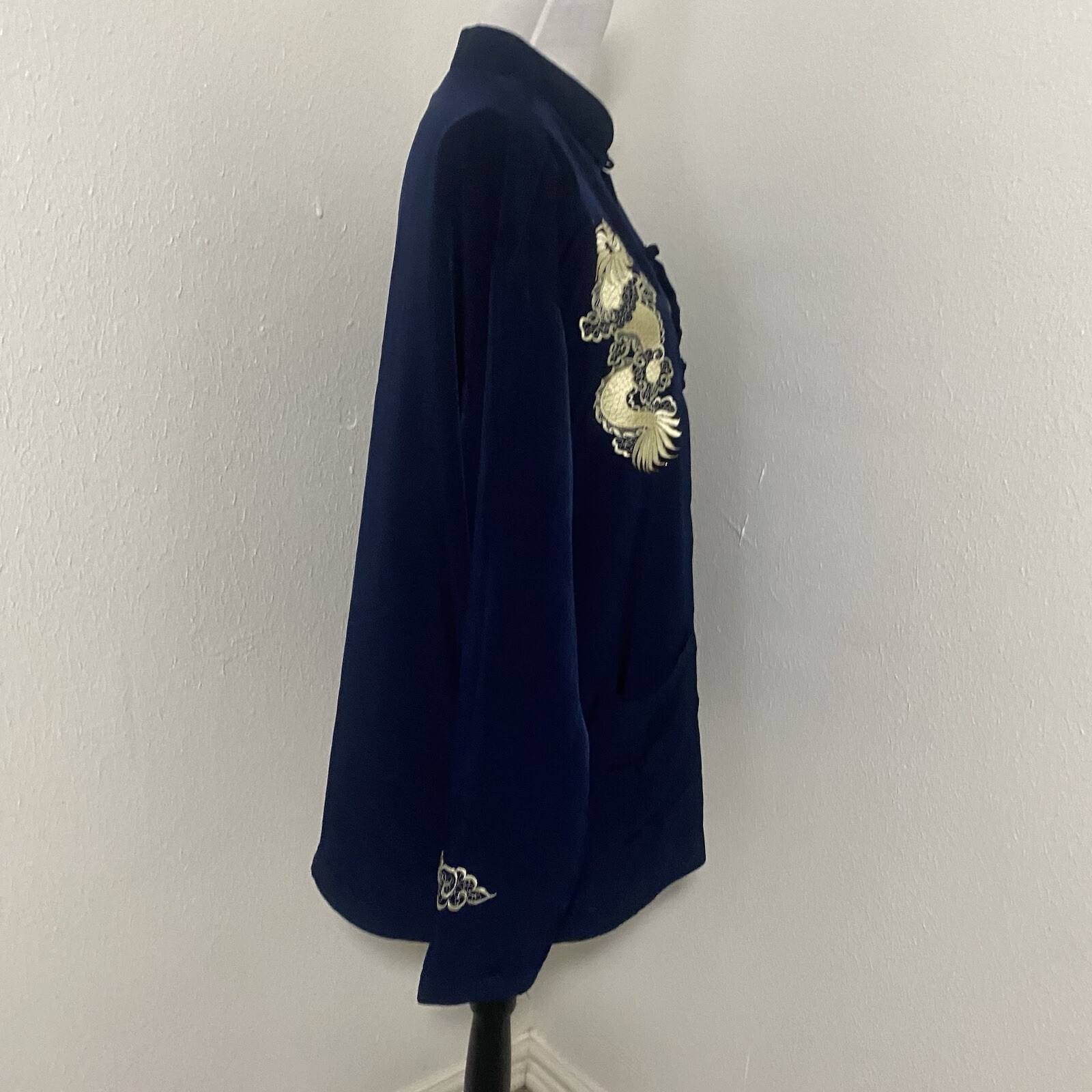как выглядит Vintage 100 Silk Mandarin Collar Dragon Embroidered Navy Jacket XXL NWT Unisex фото