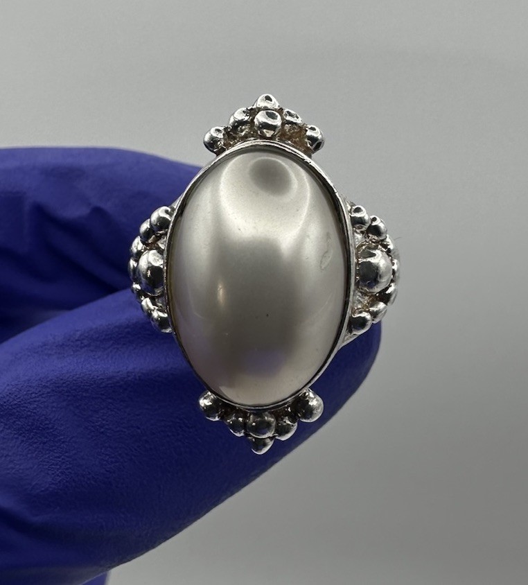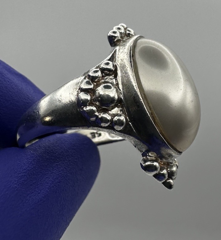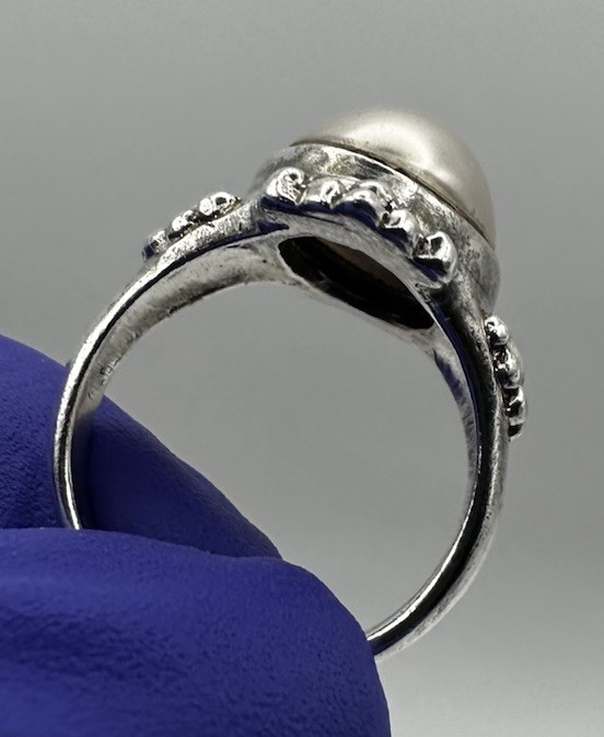 как выглядит 925 Sterling Silver Oval White Shell Pearl Ring Size 7 Vintage Style 6.1g C136 фото