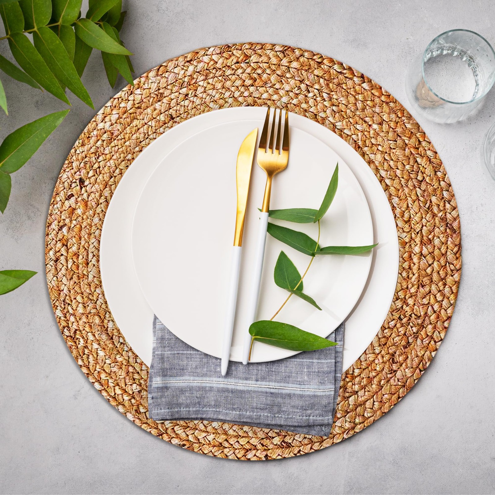Jute Round Woven Placemats Set of 4, Natural 13 Inch Boho Farmhouse Rustic Ha...