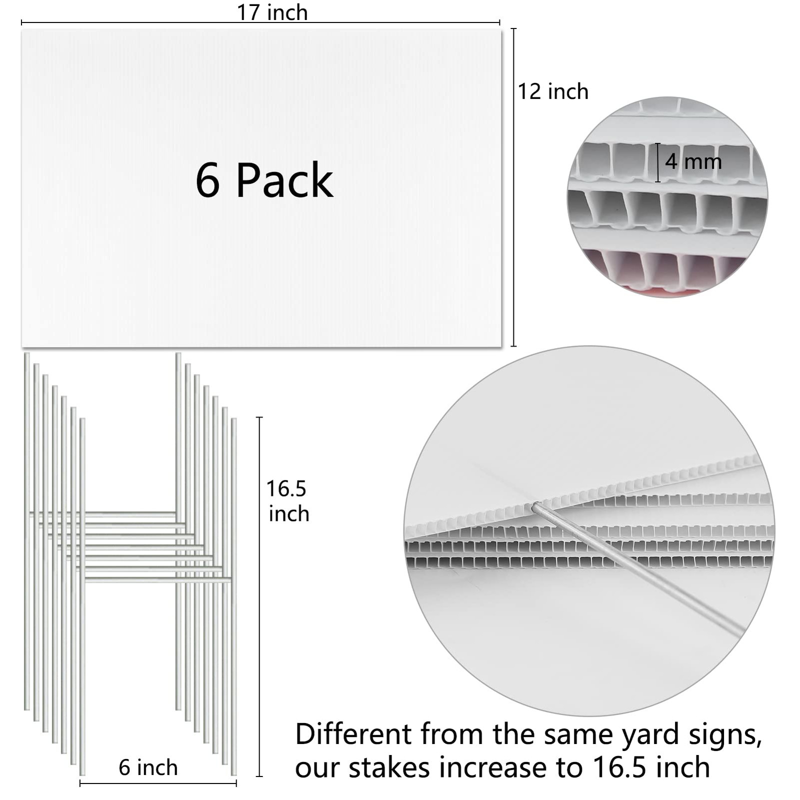 Blank Yard Signs with Stakes, 6 Pack Lawn Signs Corrugated Plastic 17x12 Inch...