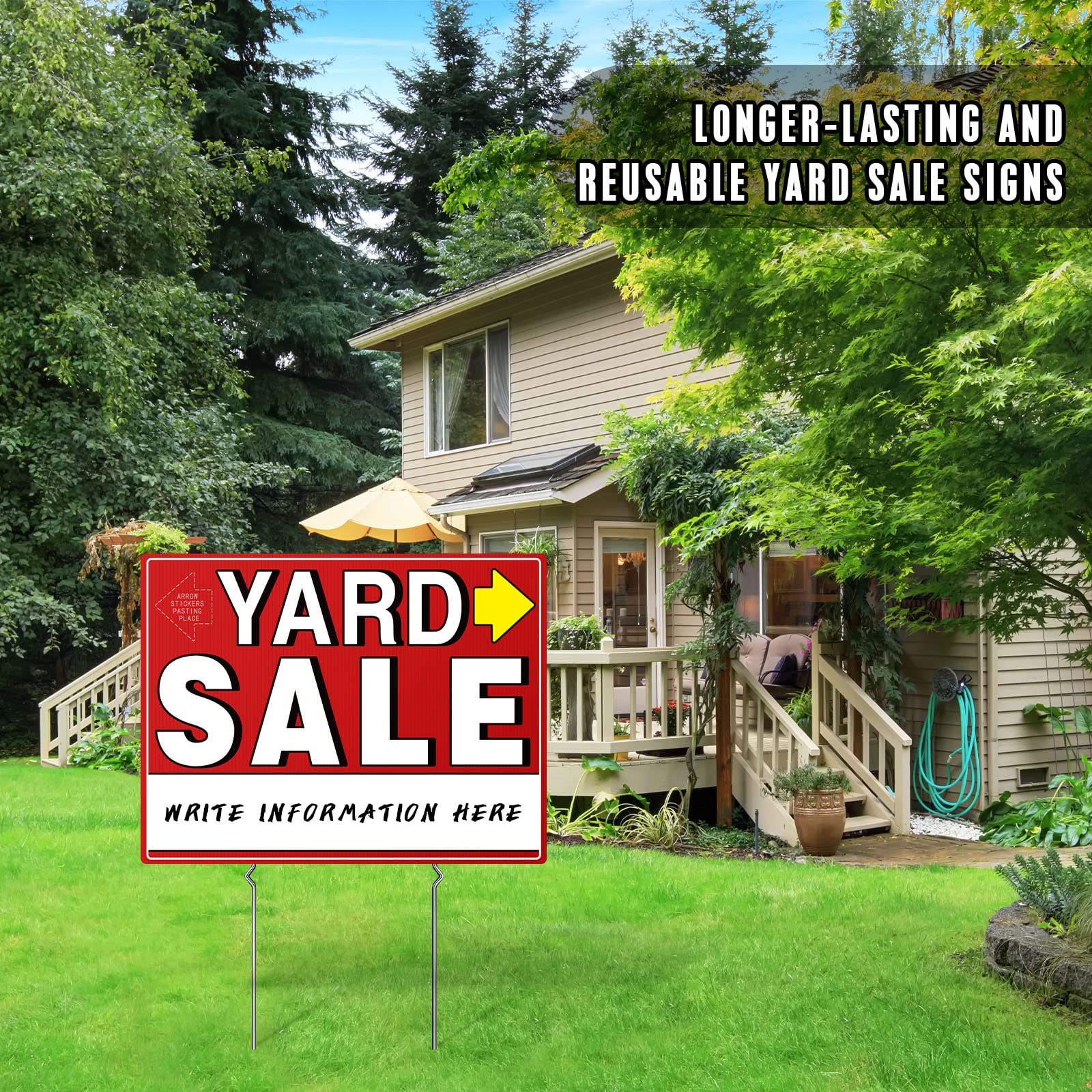 Yard Sale Signs, 3 Pcs Garage Signs with Metal Stakes, 17 x 13, Double Side...