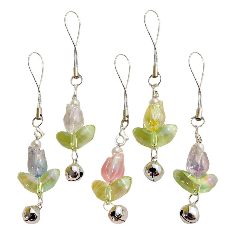 5 Pcs Cellphone Lanyard Flower Chain Charm Decoration Mobile Pendant