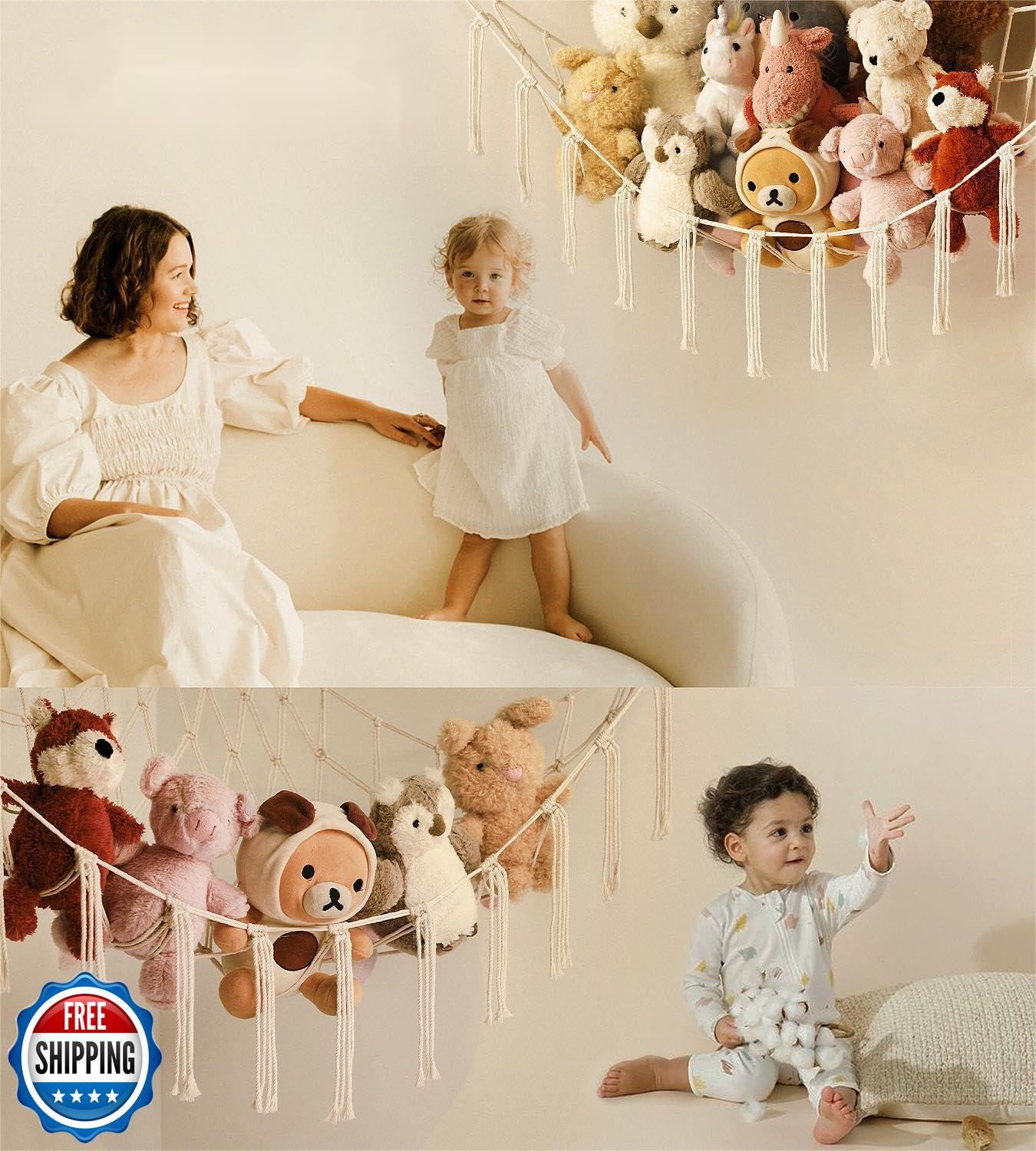 Stuffed Animal Storage Hammock or Net Corner - Large Toy Hammock Net for Stuf