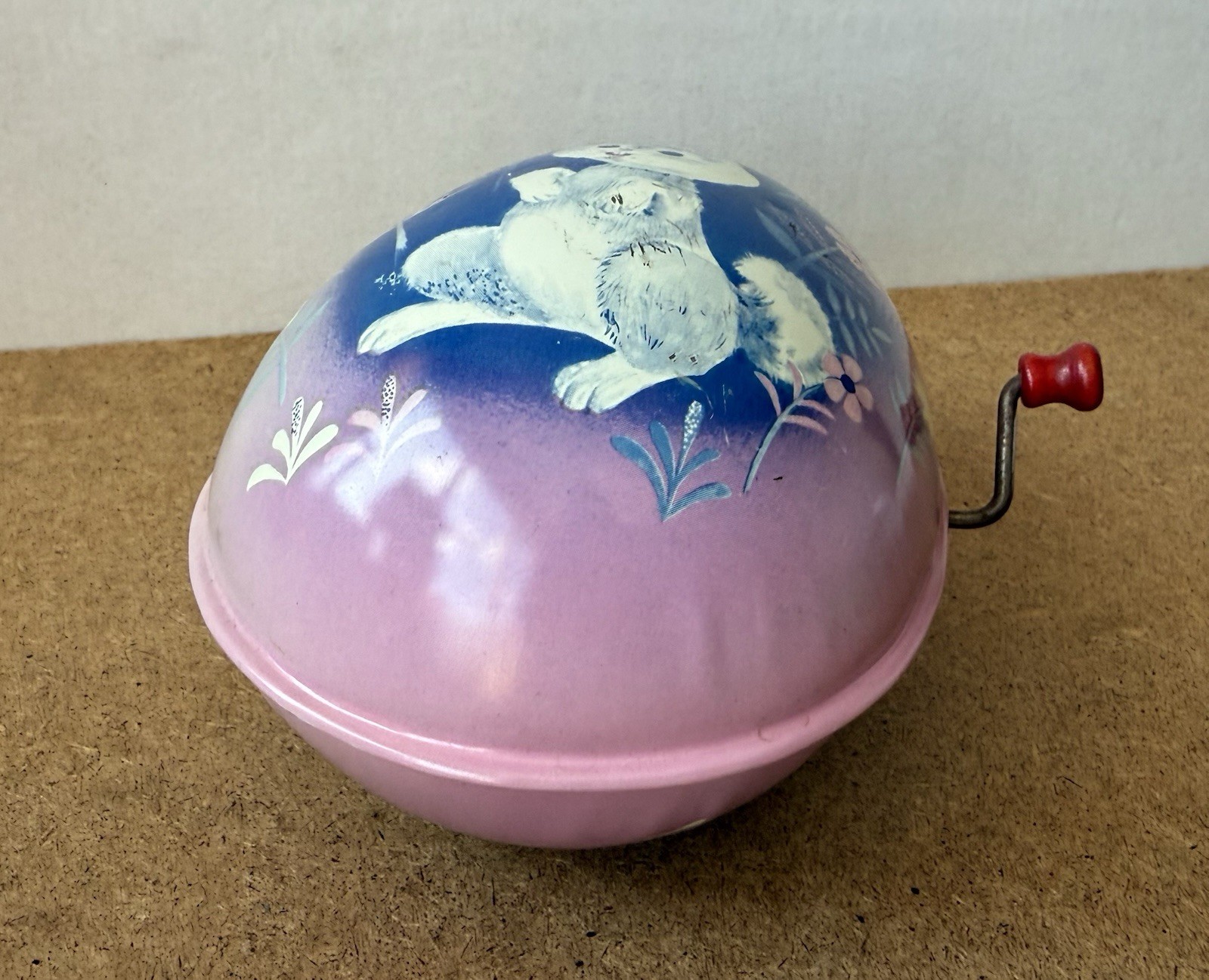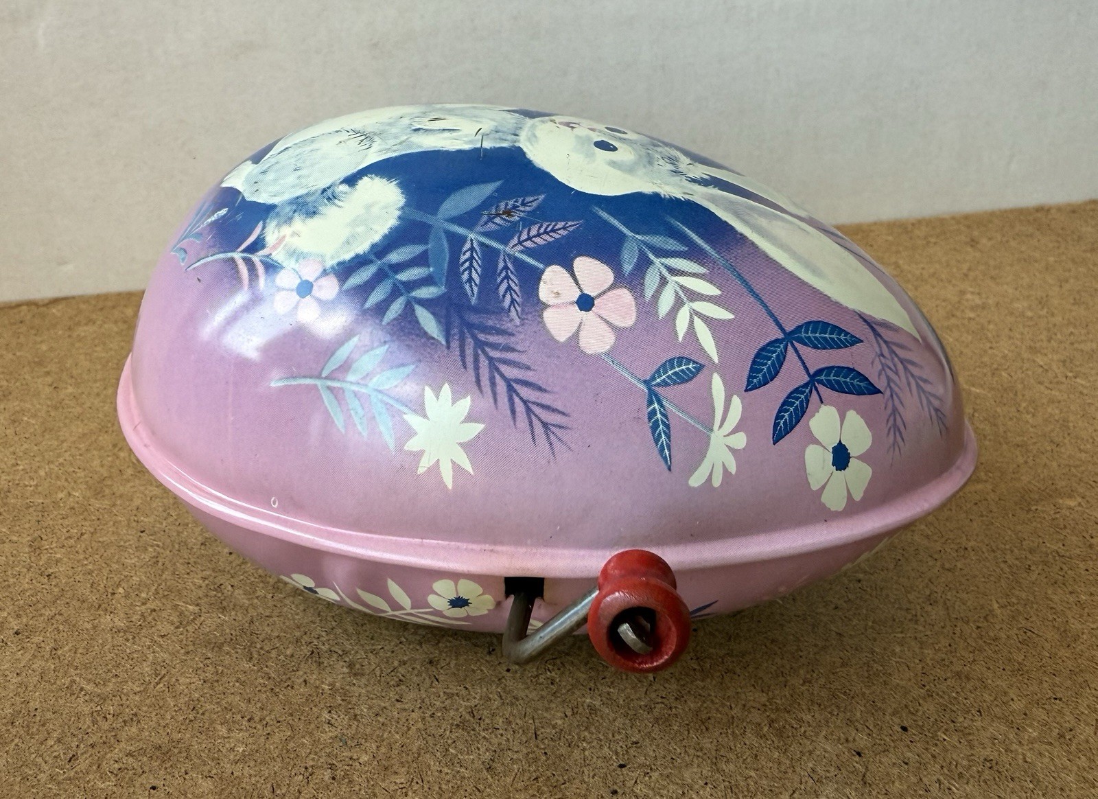 Vintage 1950s Mattel Litho Tin Easter Egg White Bunny Decor Wind Up Toy No Music