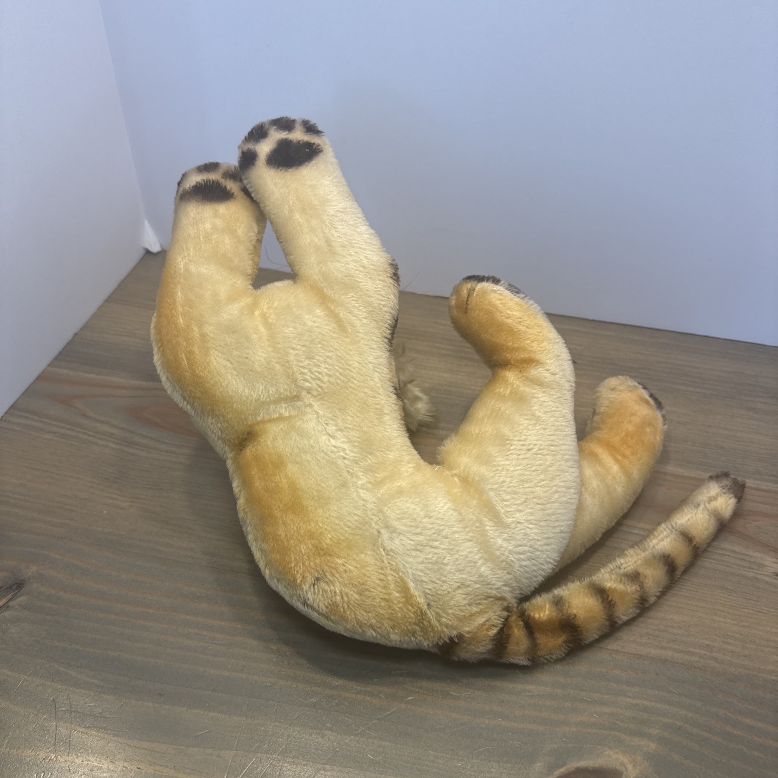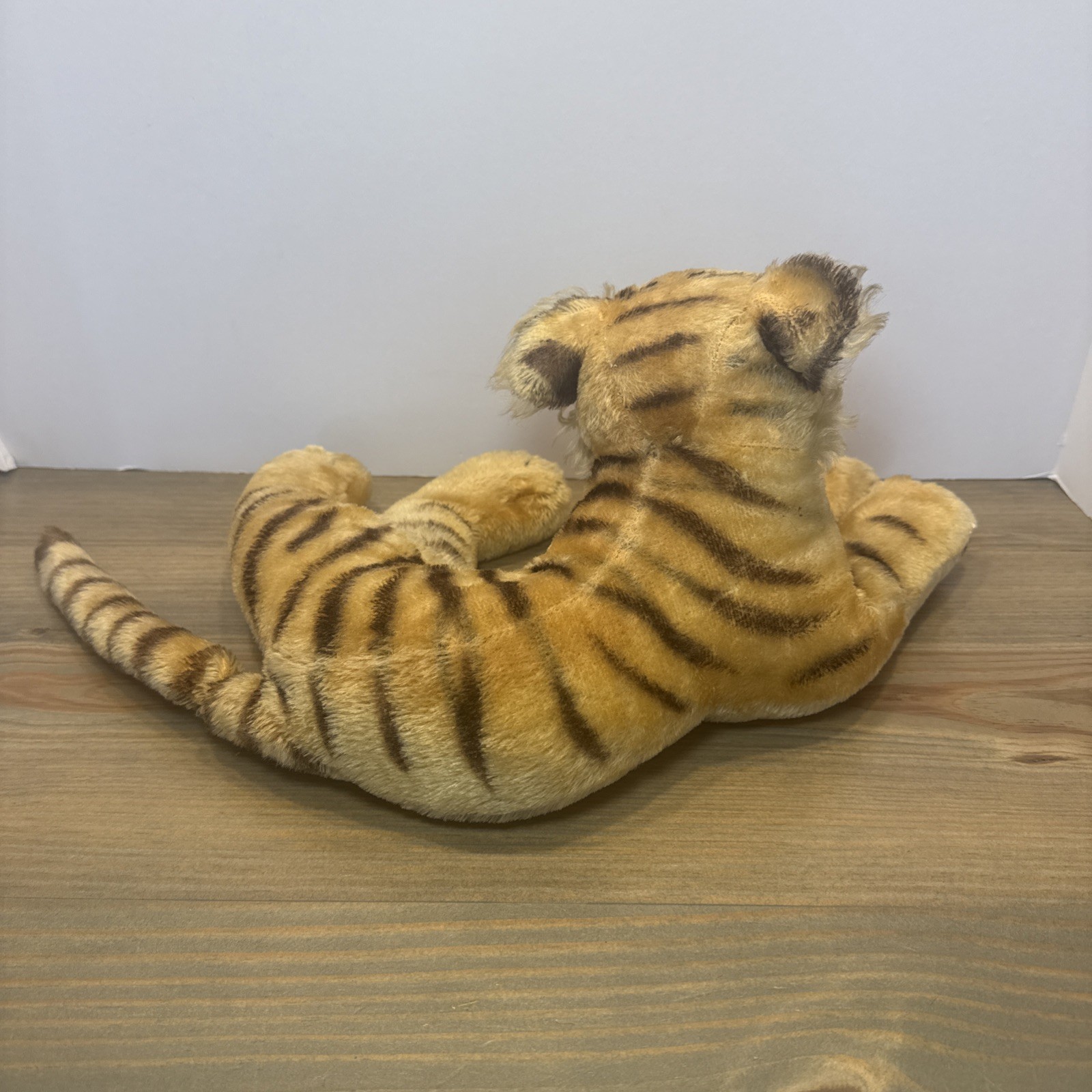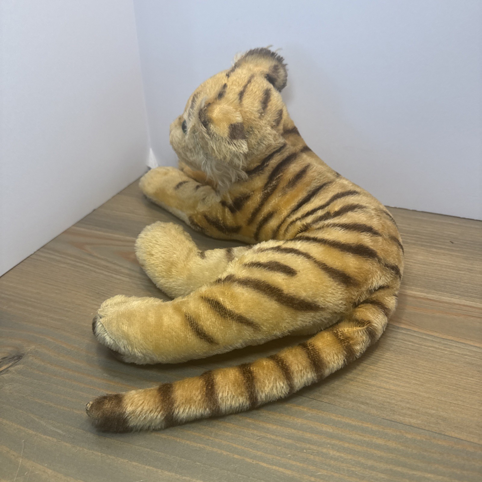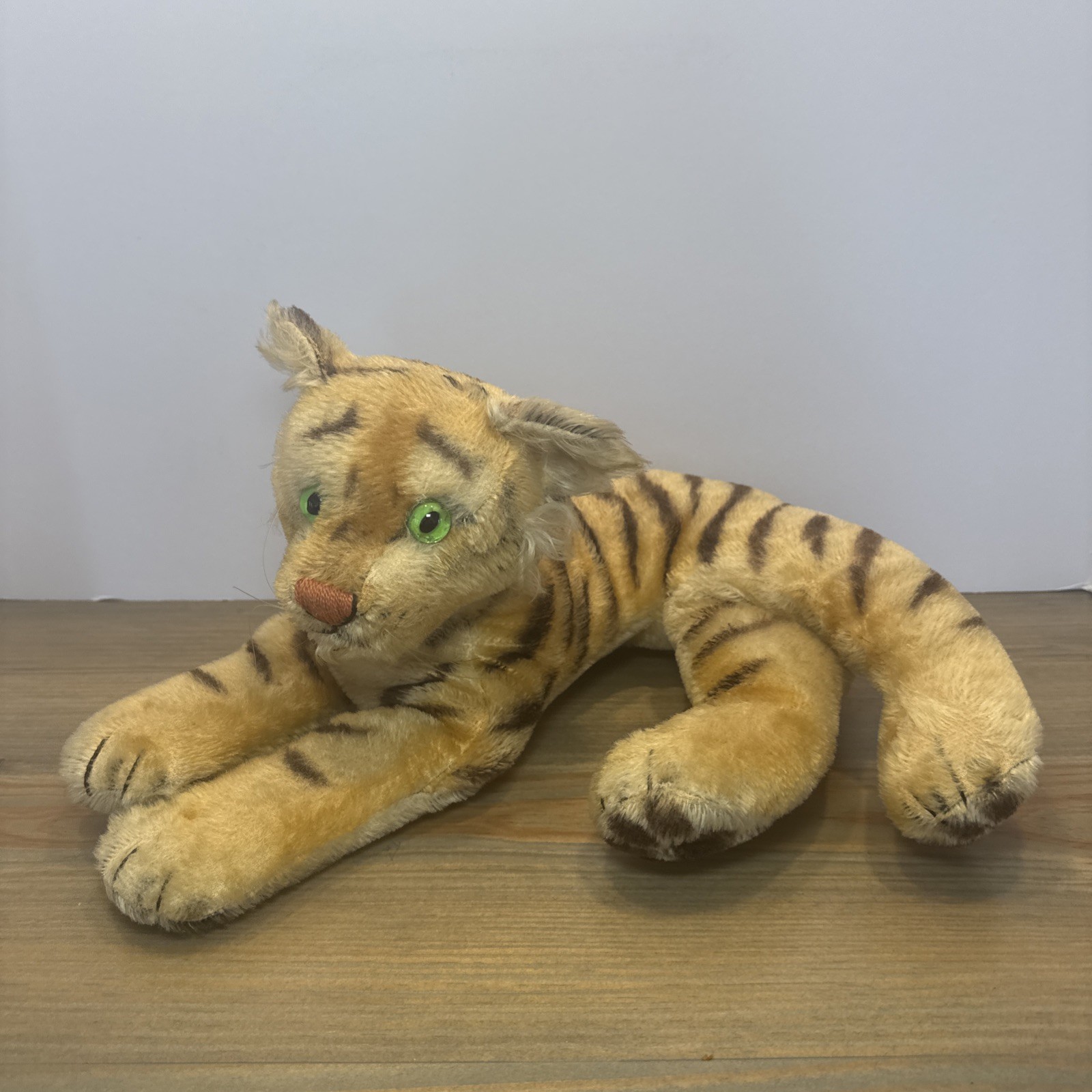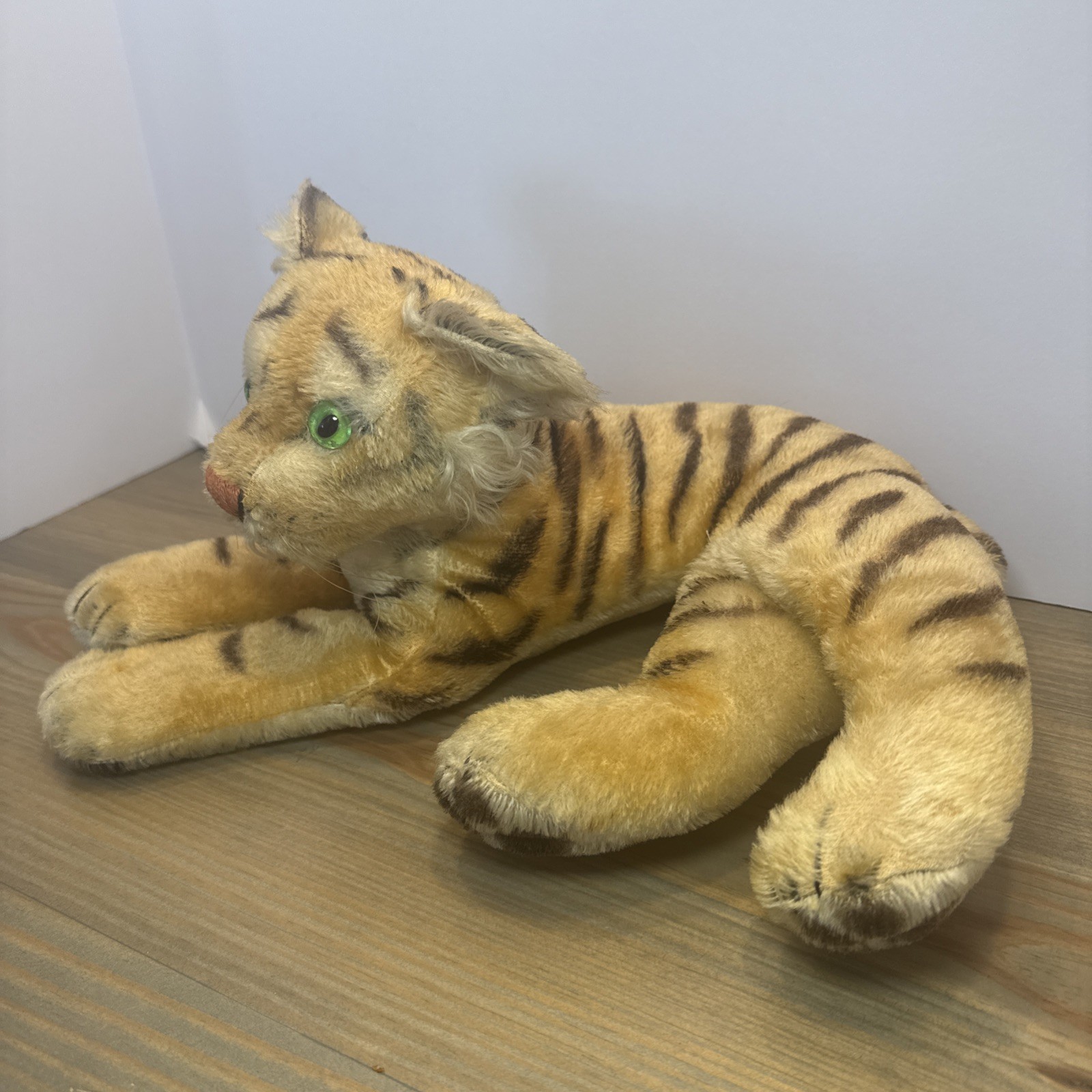 Vintage Steiff Tiger Cub Mohair Plush 10 Green Eyes Lying Germany Toy
