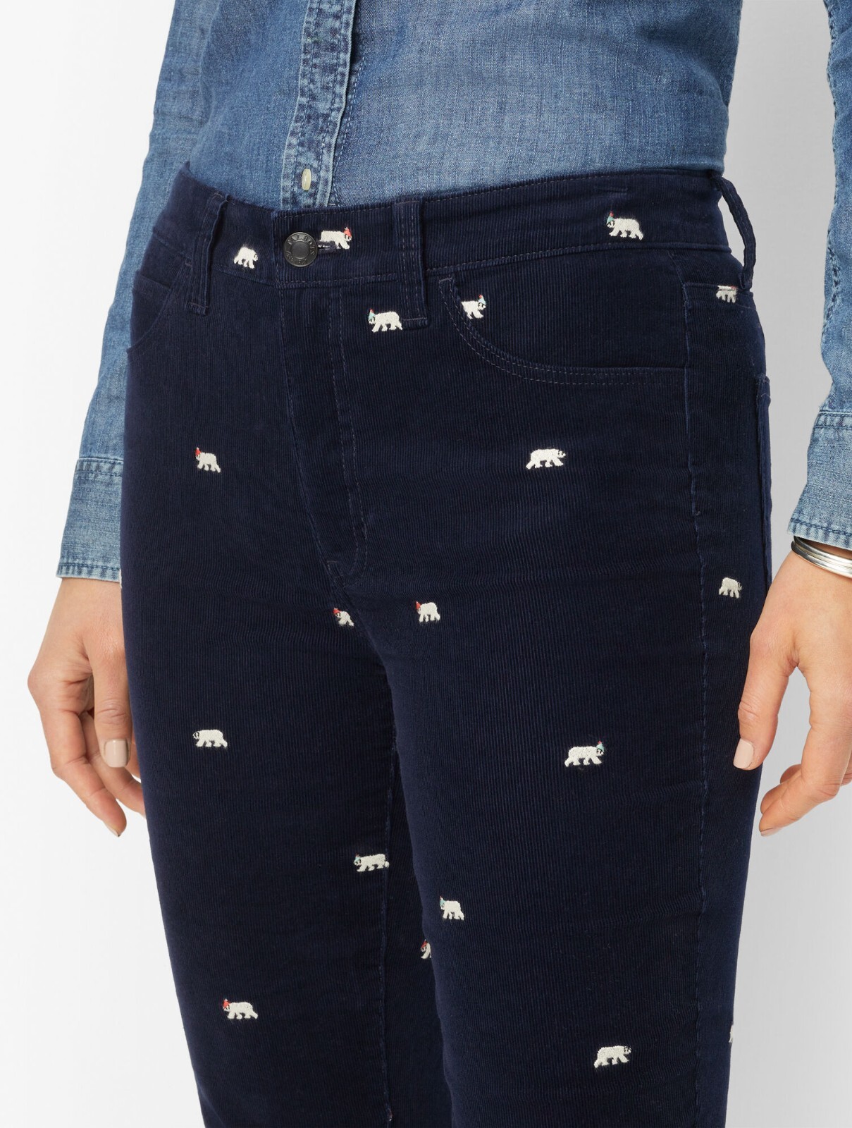 NEW 99 TALBOTS Blue Corduroy Straight Leg Pants - Polar Bear Emb Sz 8P,8 Petite