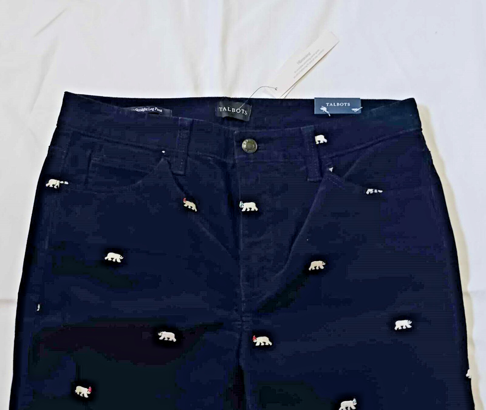 как выглядит NEW 99 TALBOTS Blue Corduroy Straight Leg Pants - Polar Bear Emb Sz 8P,8 Petite фото