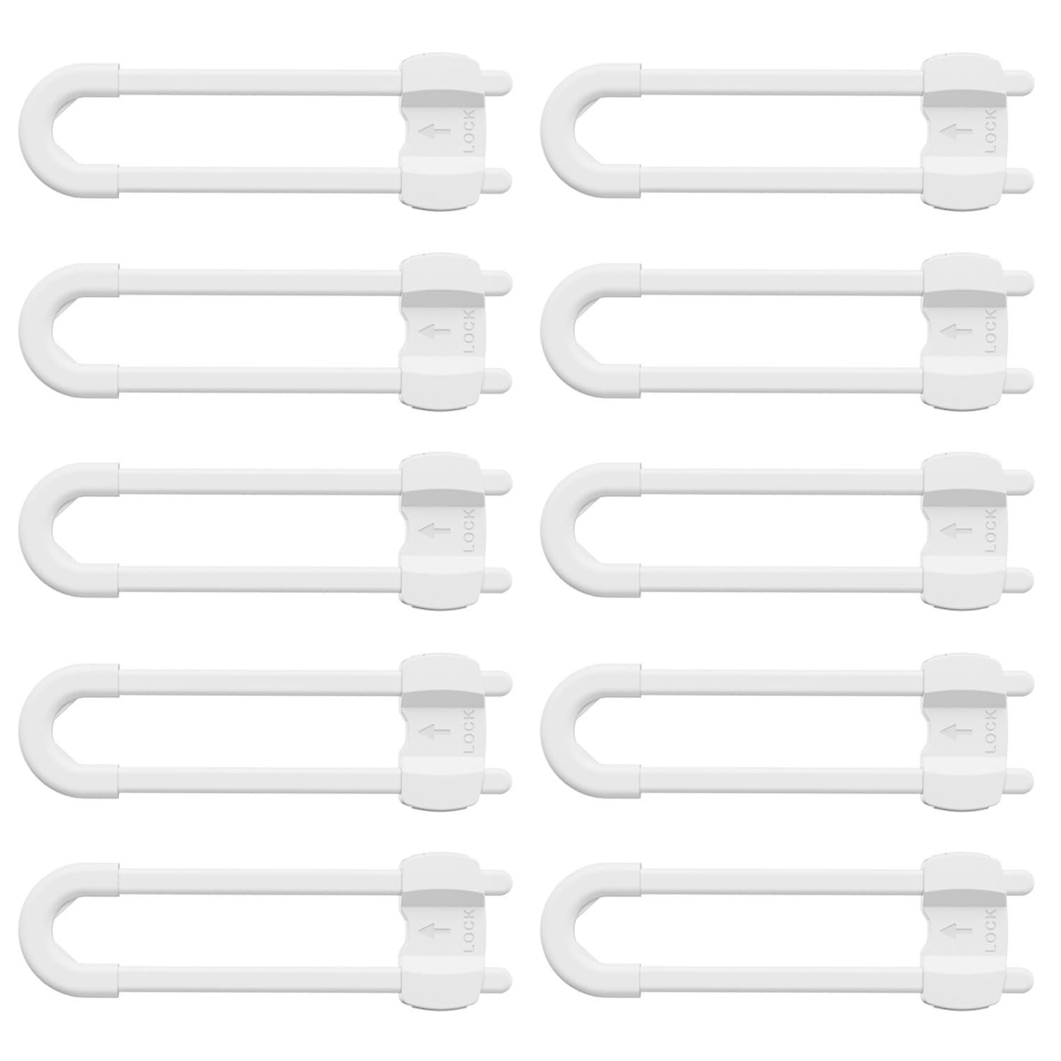 U-Shaped Childproof Drawer Locks - 10 Adjustable Cabinet Locks for Safety