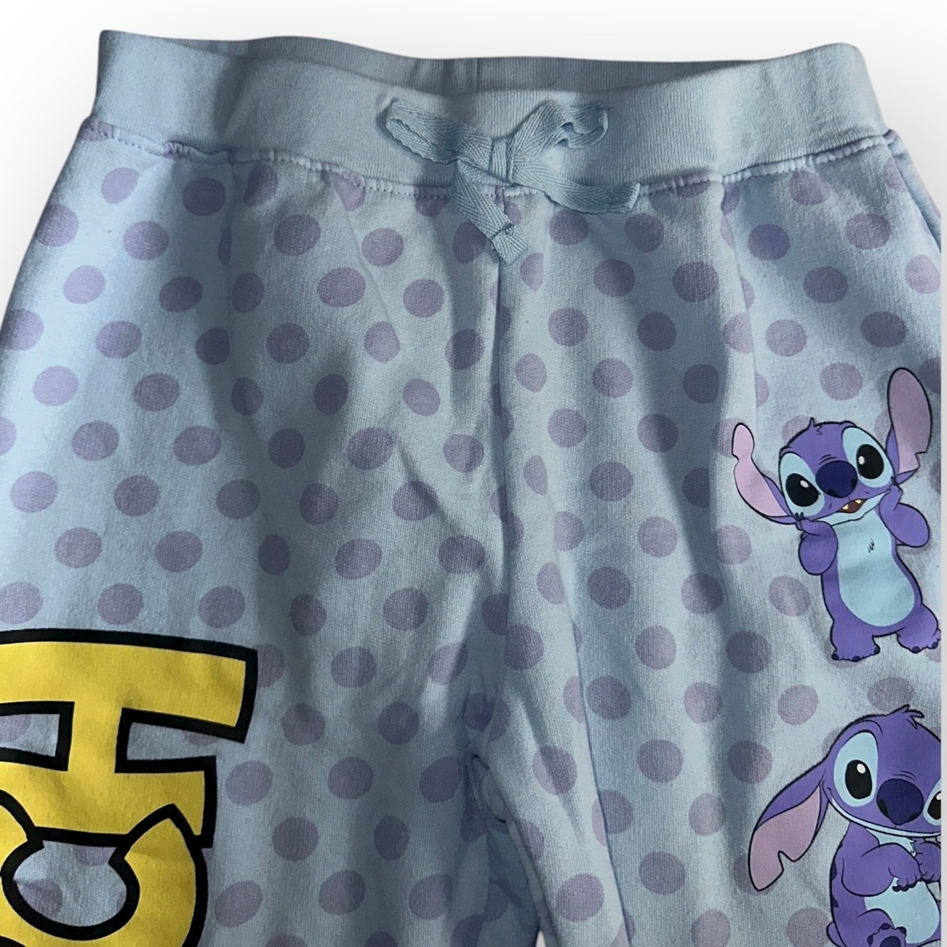 Disney Lilo Stitch Girls Joggers Sweatpants Size 7/8 Blue Polka Dot Sleepwear