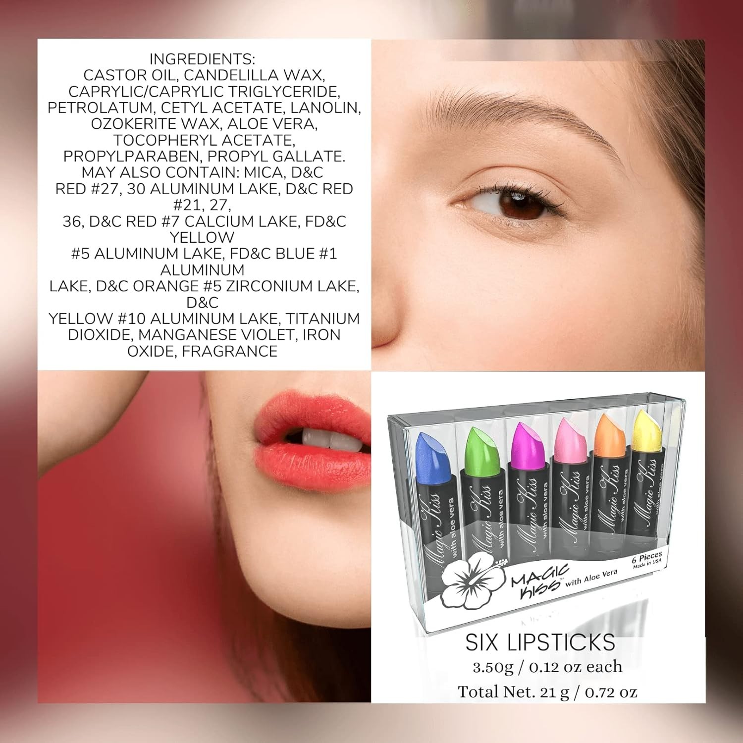 как выглядит Aloe Vera Color Changing Lipstick 6pc - USA Natural Matte, Hydrating, Gift Set фото