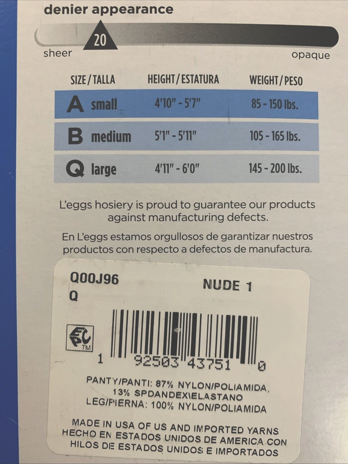 как выглядит Leggs Everyday Control Top Sheer Toe Pantyhose 3 pair size Q NUDE 43751 фото