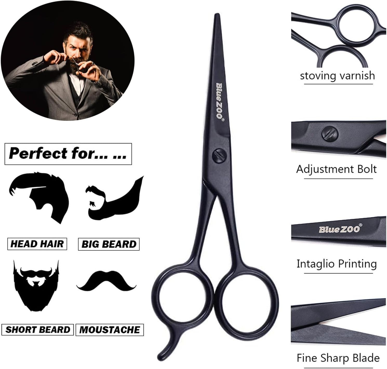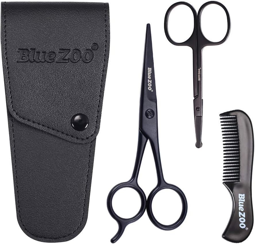 Beard Mustache Scissors and Comb Kit with PU Storage Bag, Rounded Safety Nose...