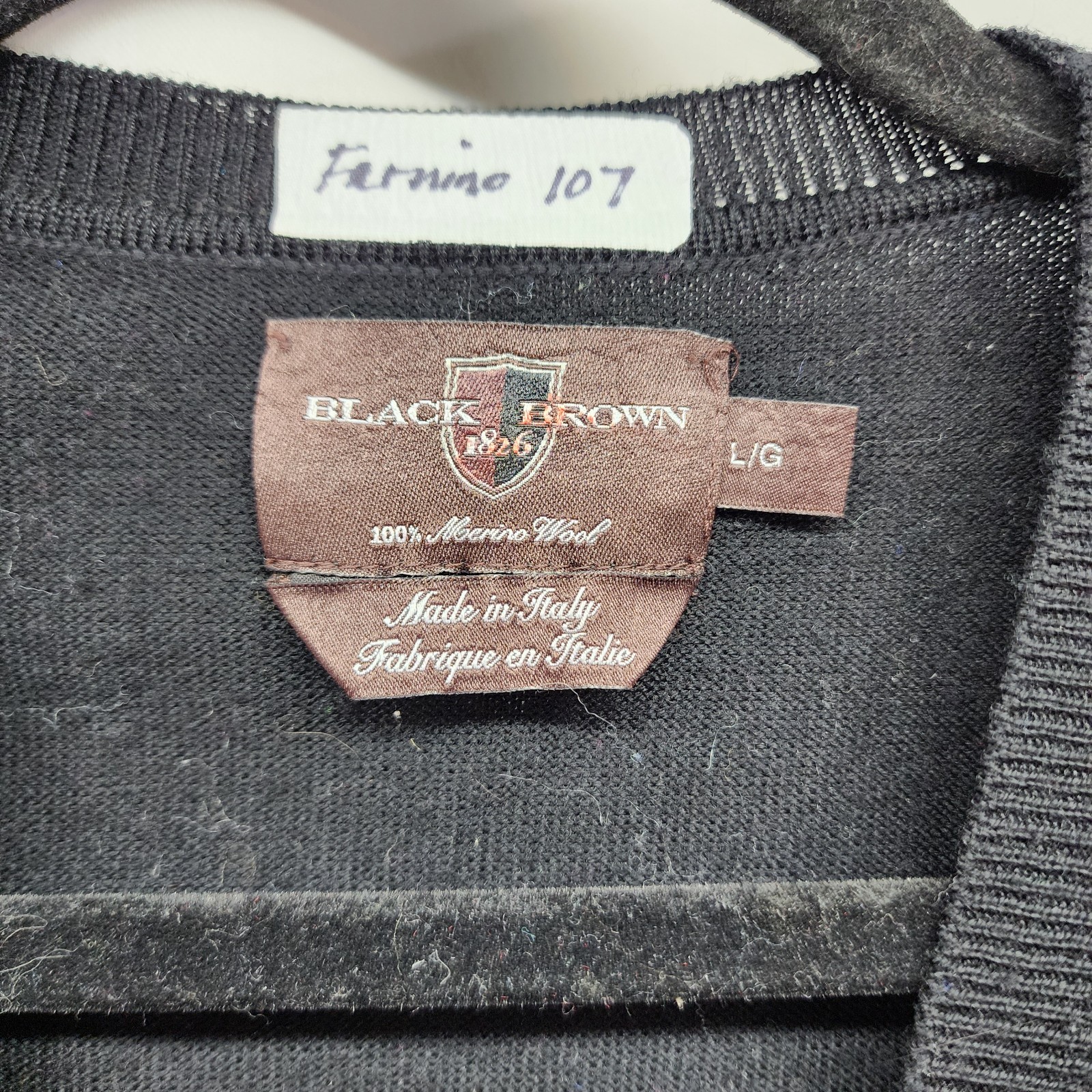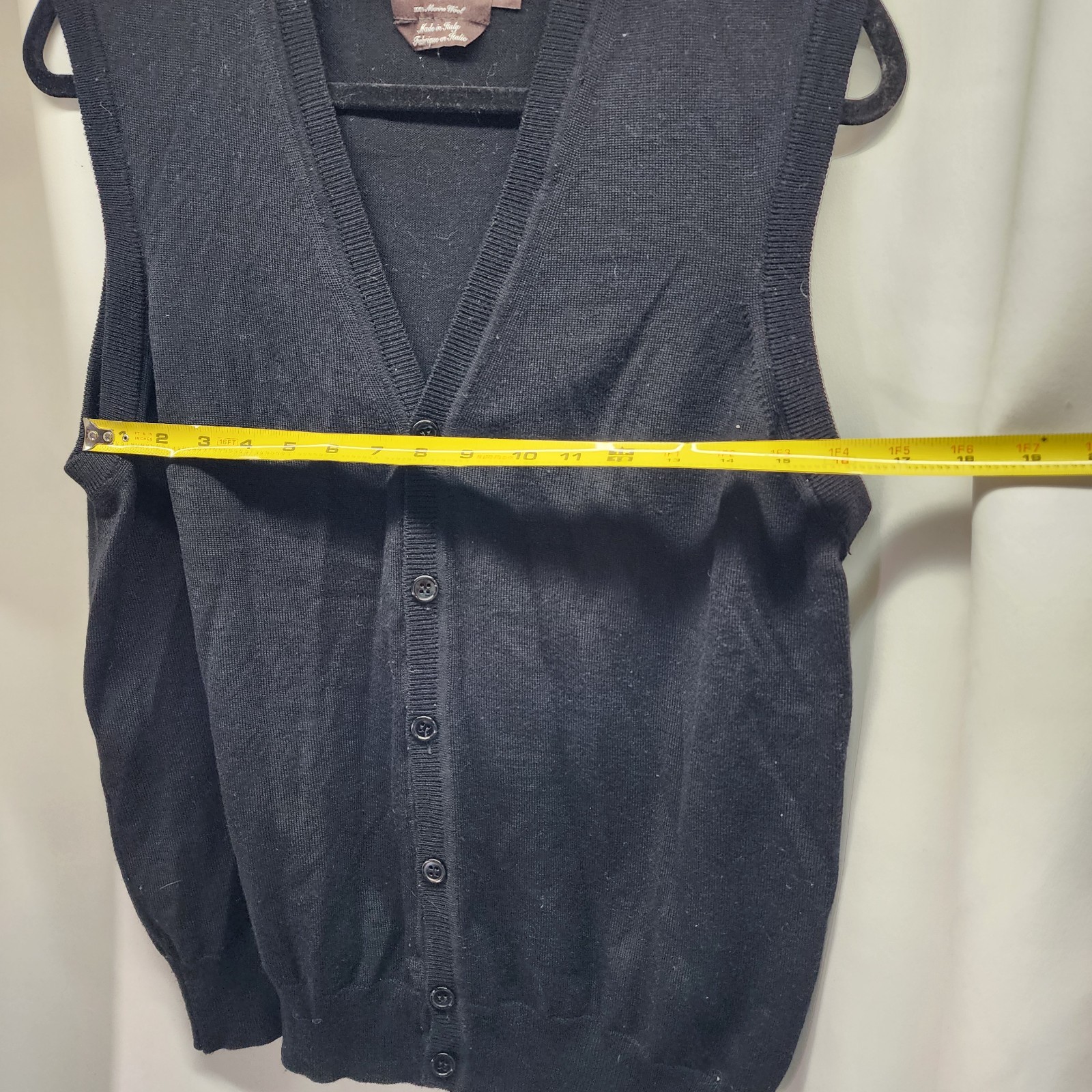 Black Brown 100 Merino Wool Black Sweater Vest Made in Italy Large Preppy