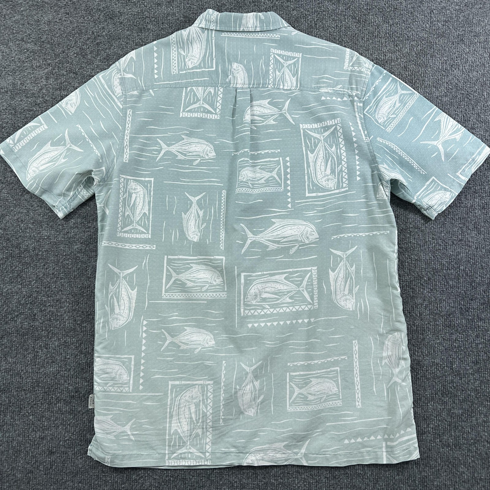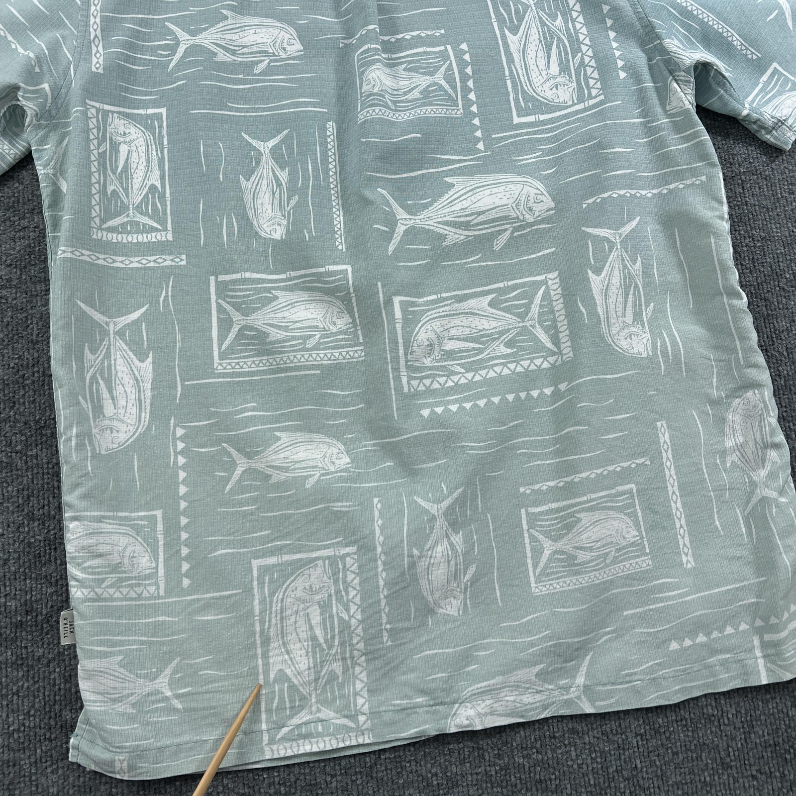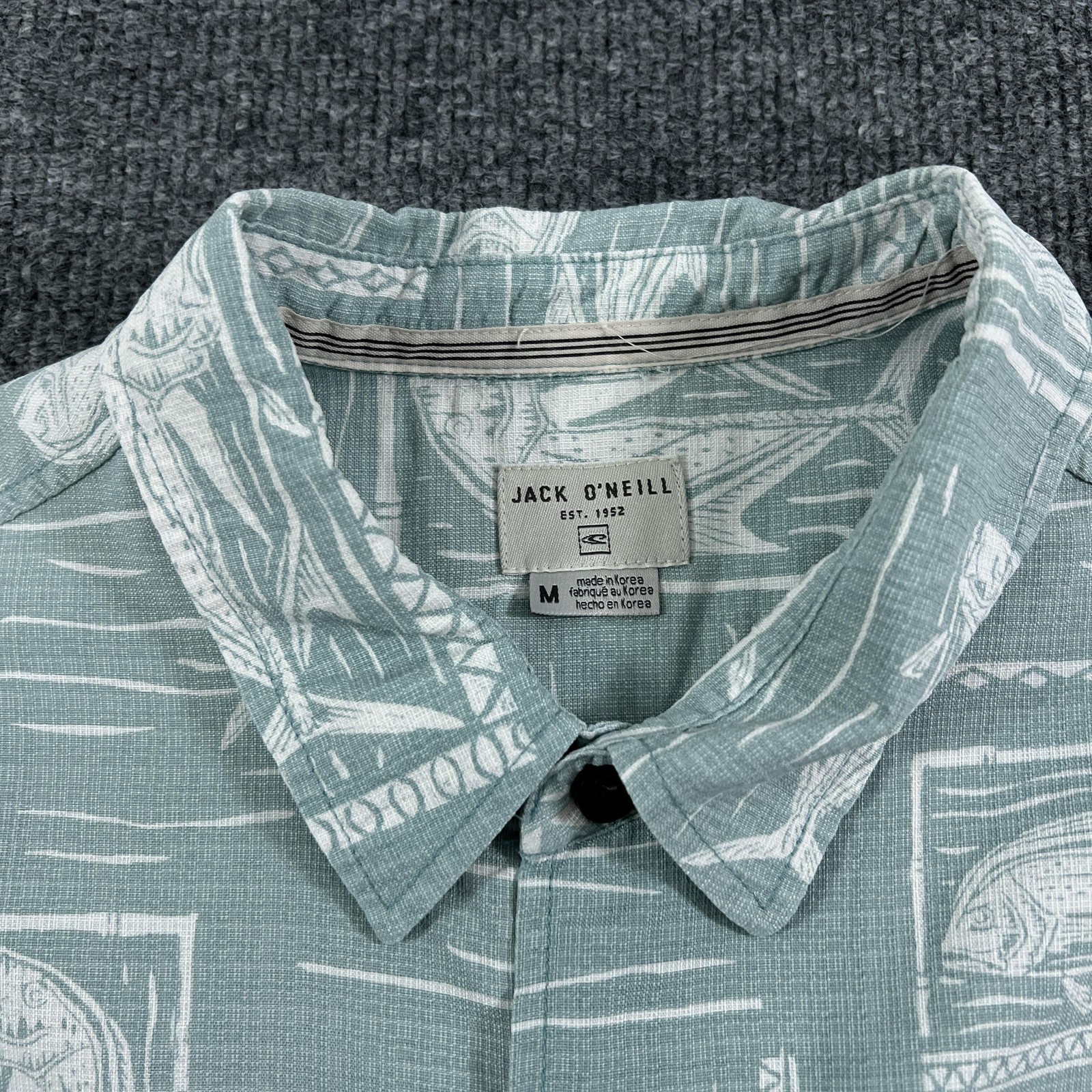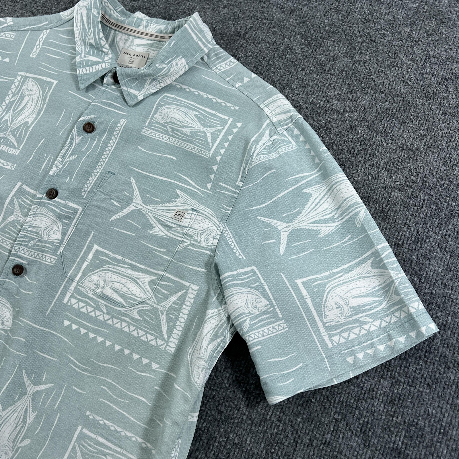 Jack O'Neill Shirt Mens Medium Green Fish Print Hawaiian Short Sleeve Button
