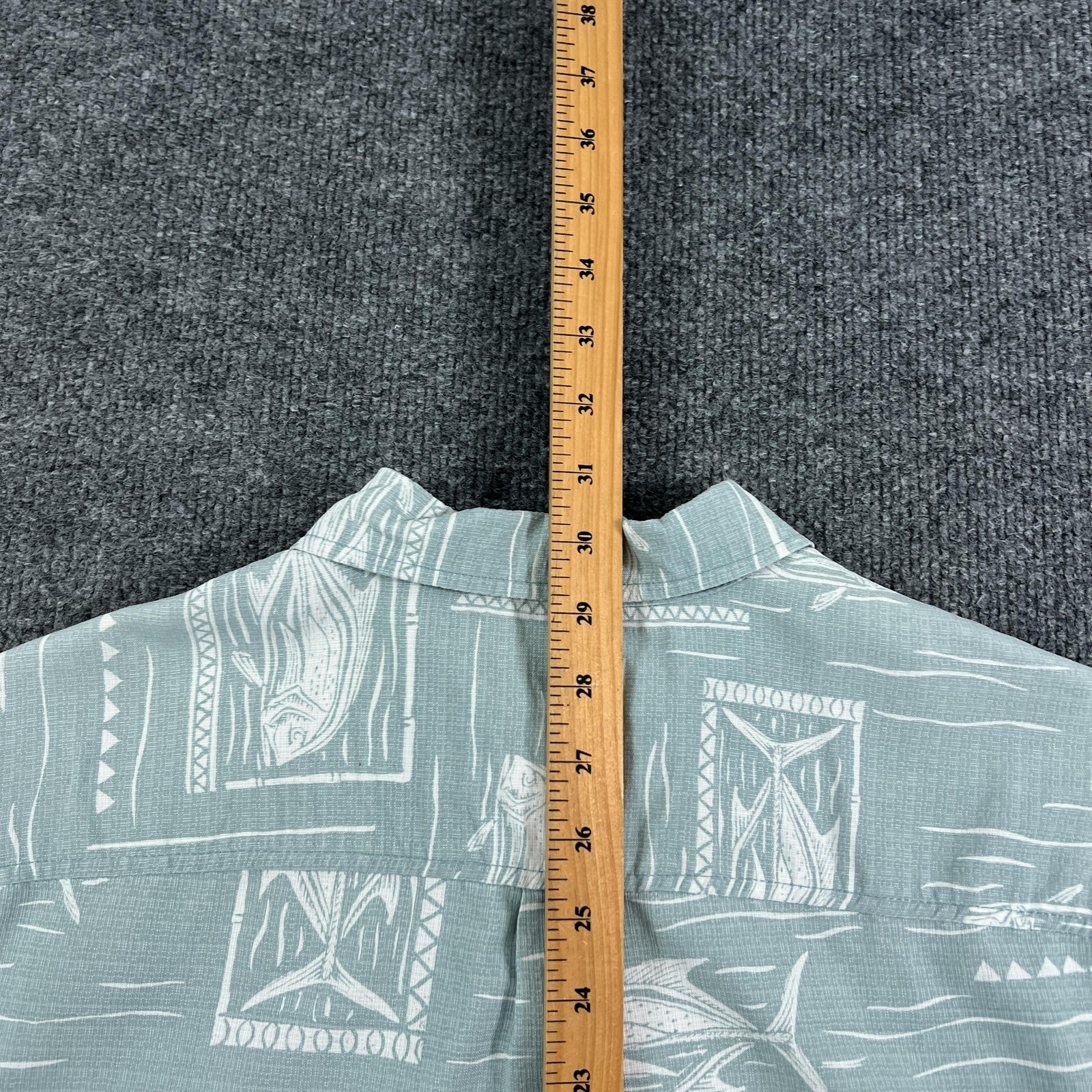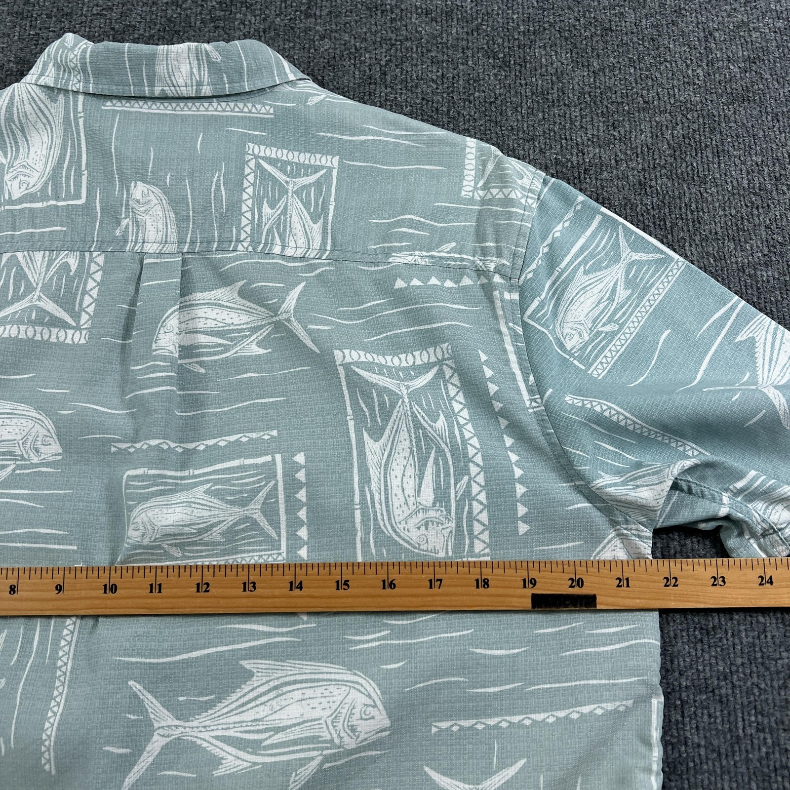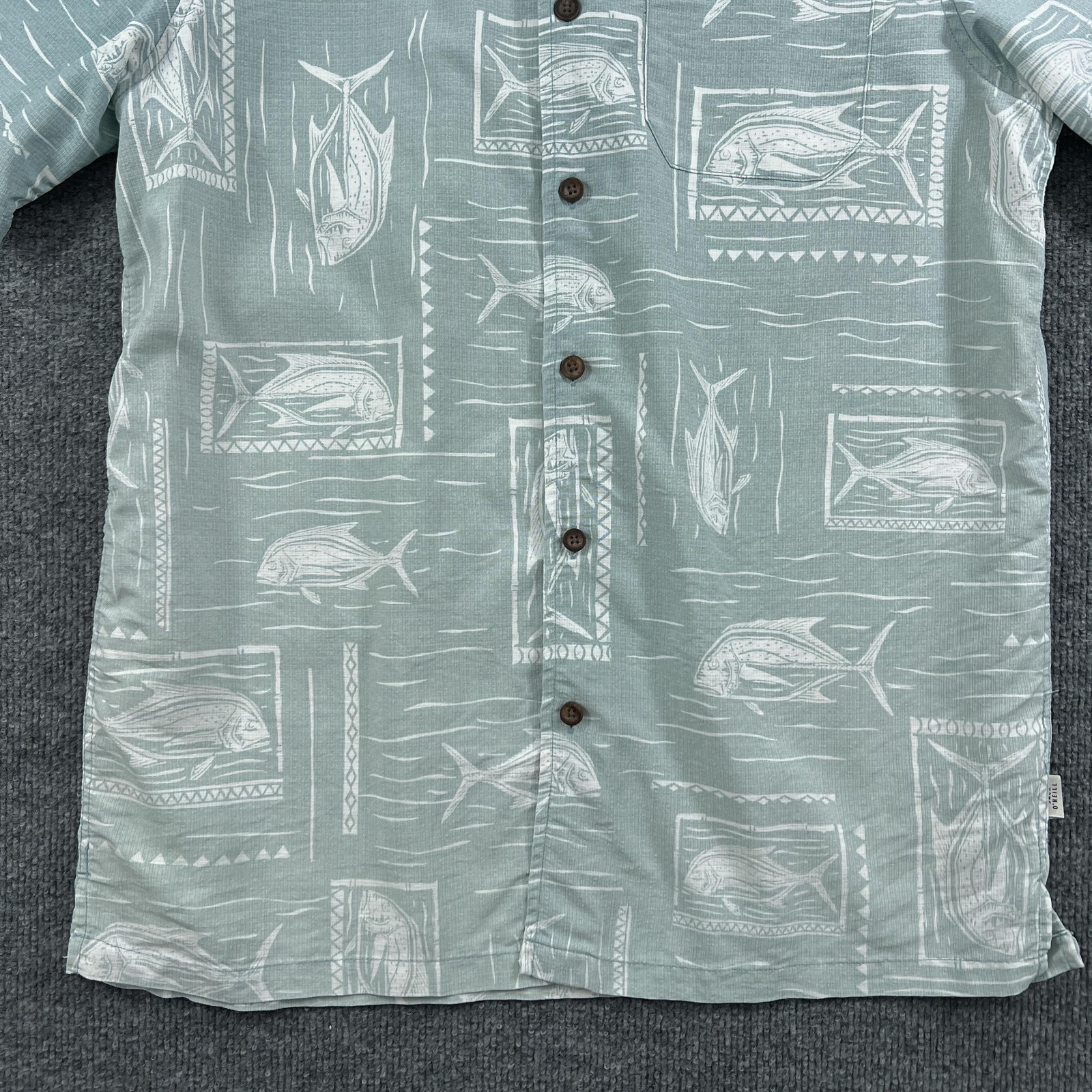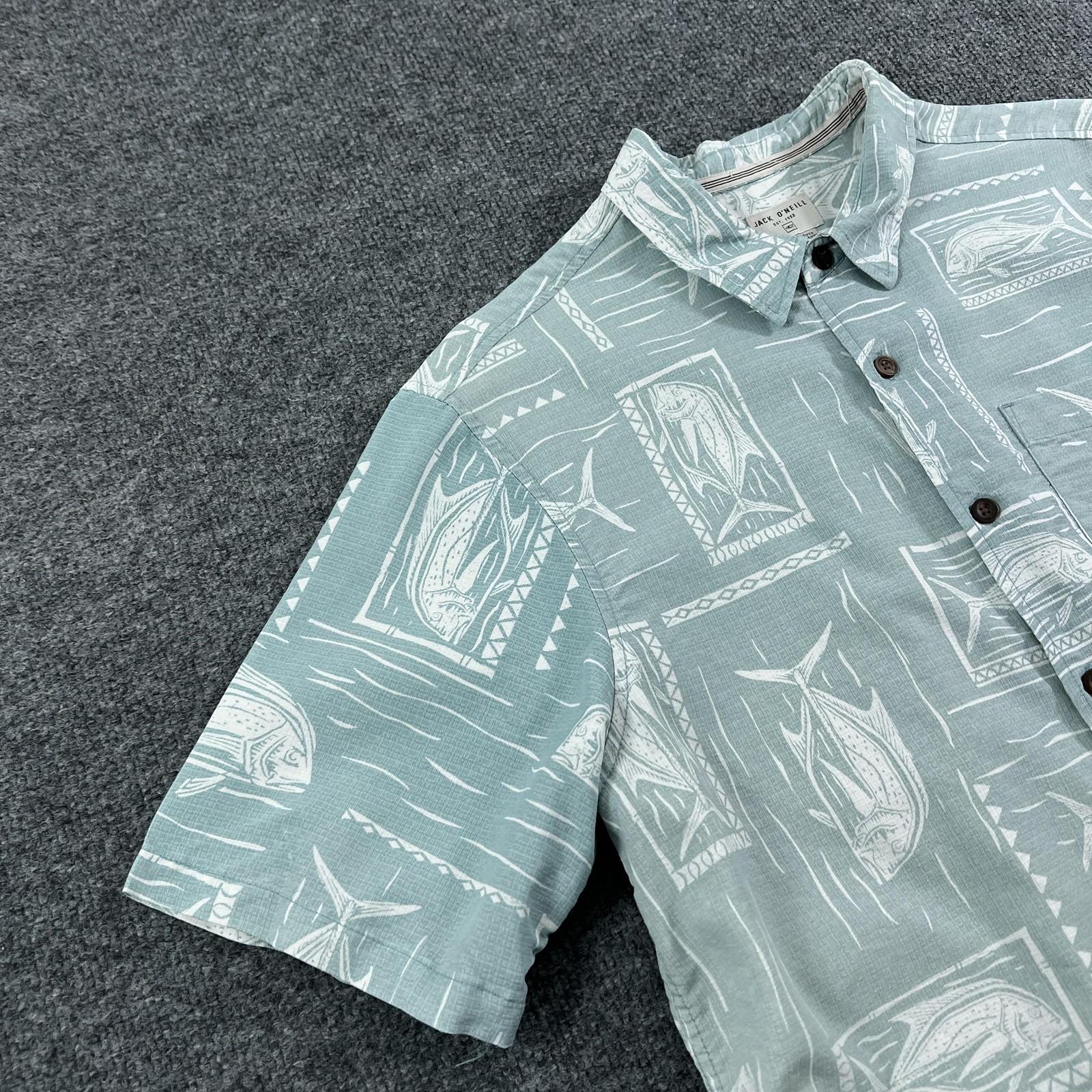 Jack O'Neill Shirt Mens Medium Green Fish Print Hawaiian Short Sleeve Button