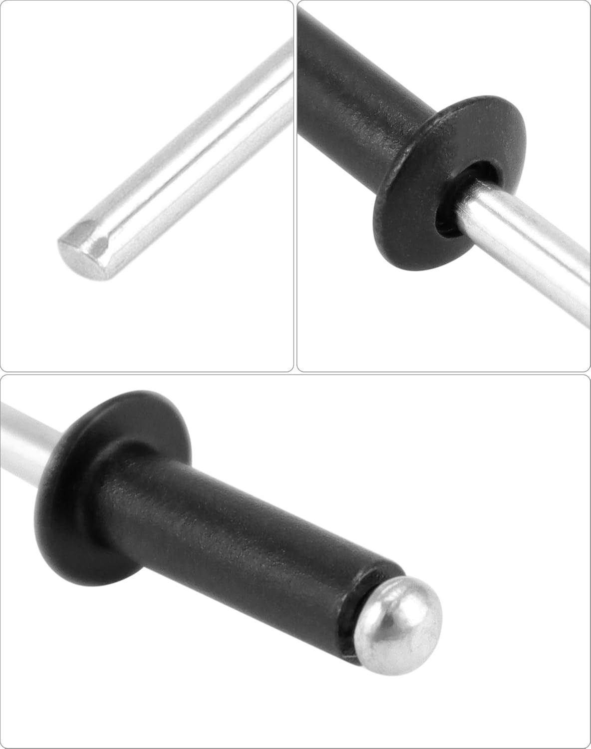 • 500PCS 1/8 x 3/8 Aluminum Blind Rivets Large Flange Black Pop Rivets Set Packs
