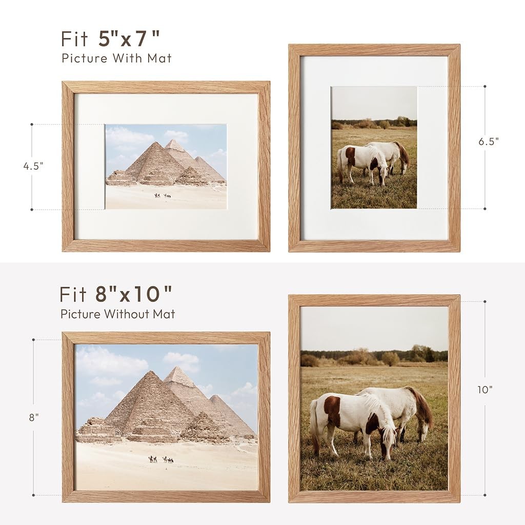 8x10 Picture Frame, Solid Oak Wood 8x10 Photo Frame with Mat to 5x7, 10x8 Pic...