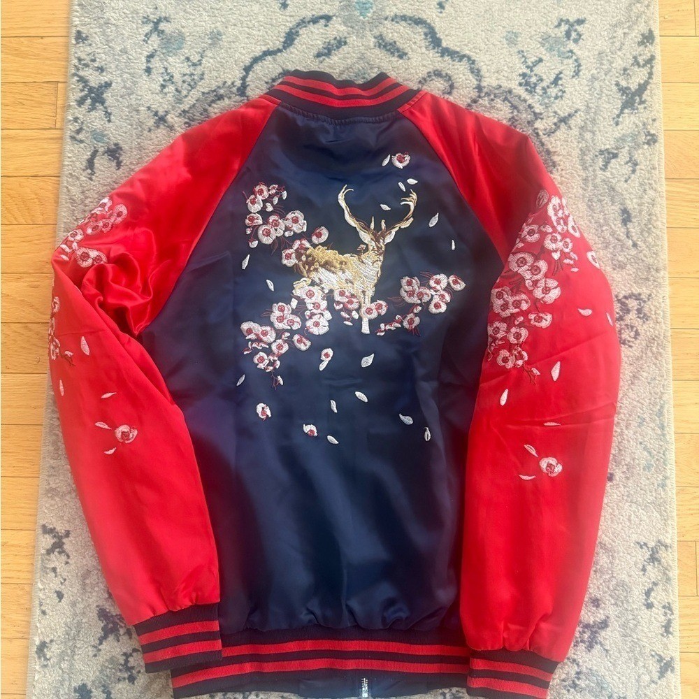 Elegant and Delicate Sika Dear embroidered bomber jacket Medium Japanese Cherry