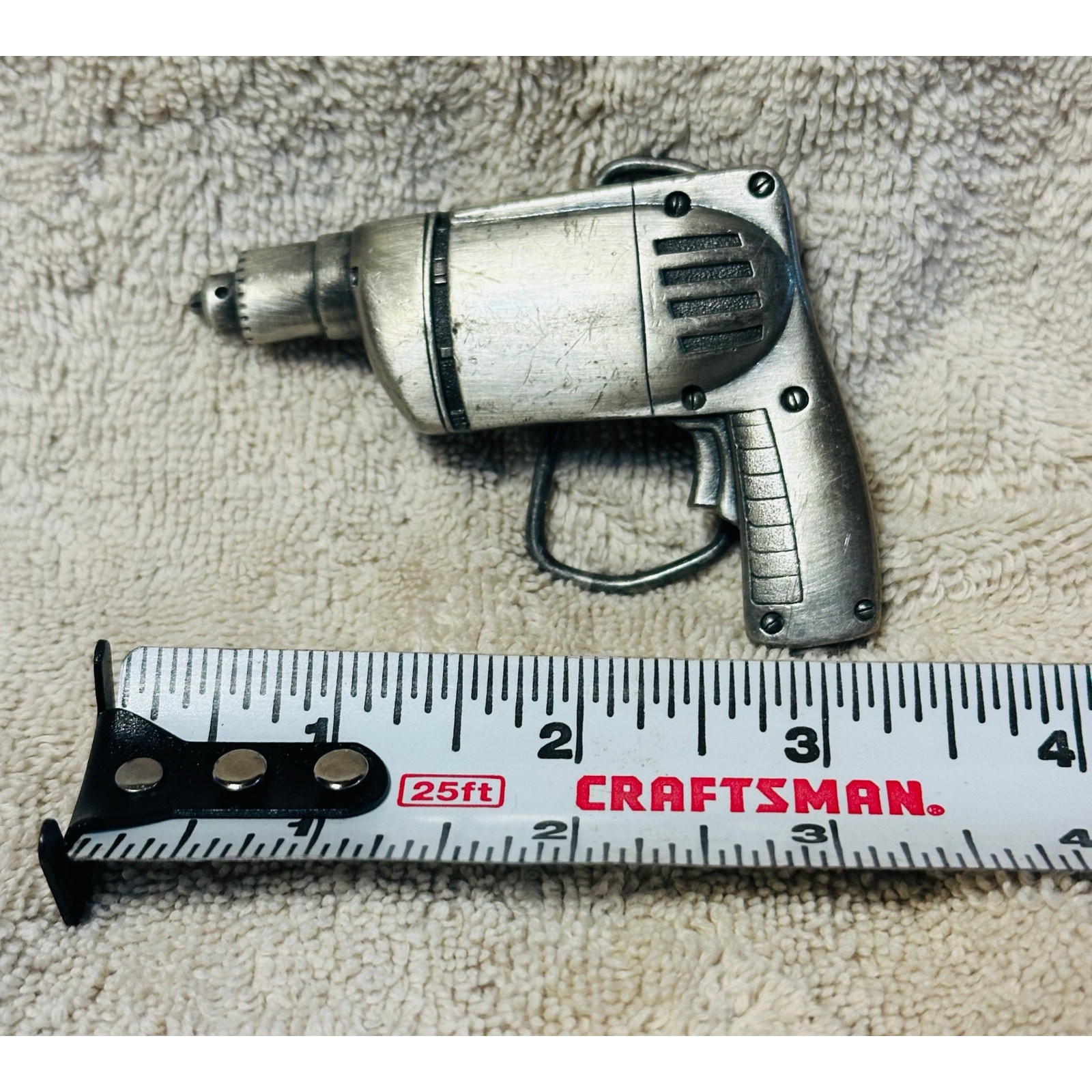 VTG Belt Buckle 1980 Bergamot Brass Works Handheld Drill Tool Pewter Tone cowboy