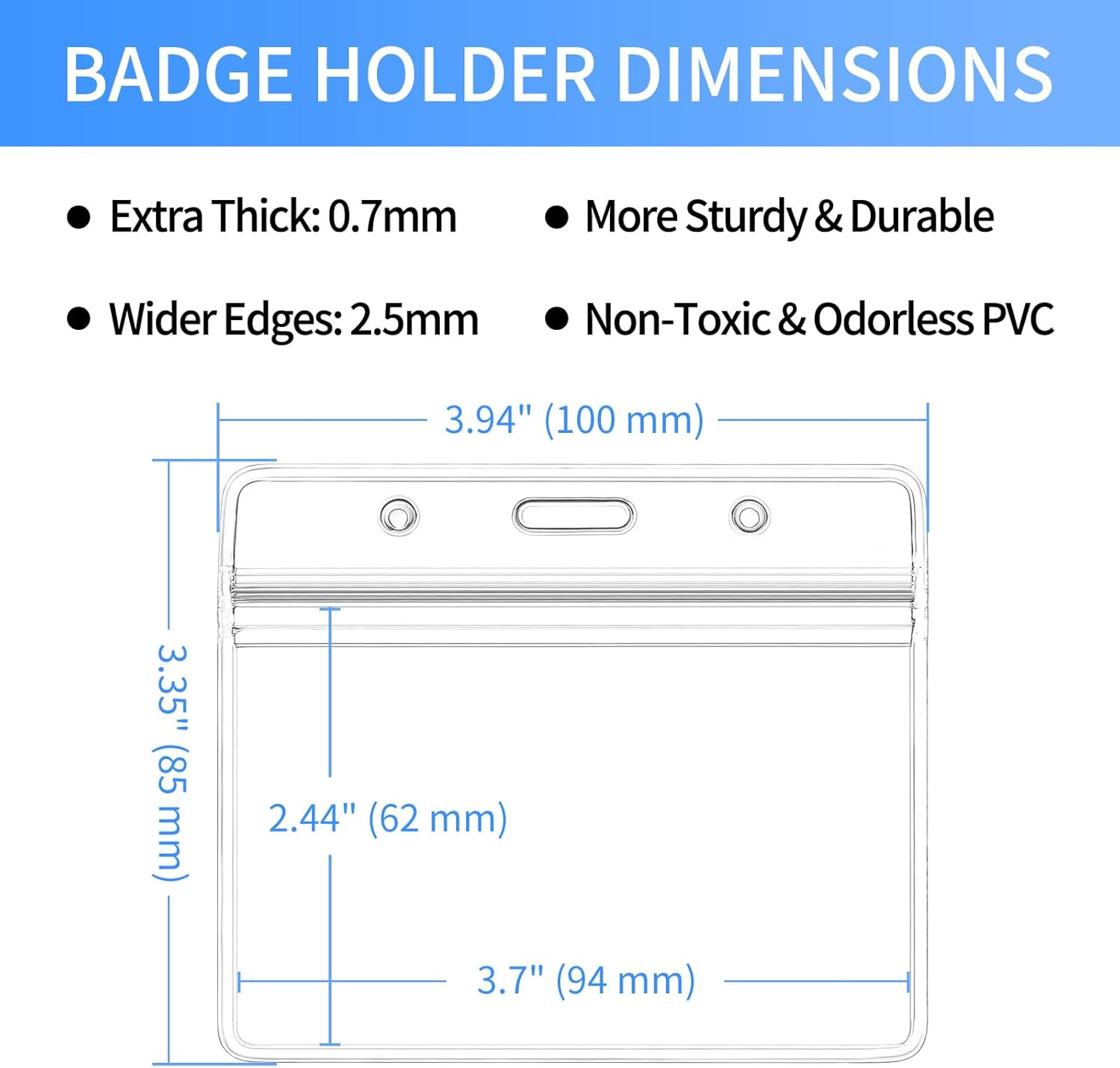 50 pcs Clear Horizontal ID Badge Holder, Waterproof Plastic Name Tag Sleeve w...