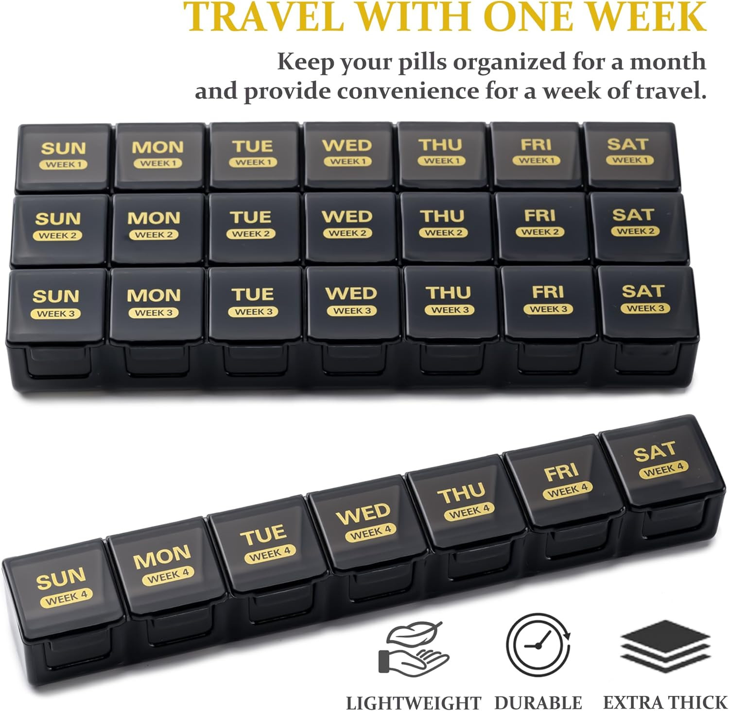Large Monthly Pill Organizer 28 Days Portable One Month Pill Box Weekly Case