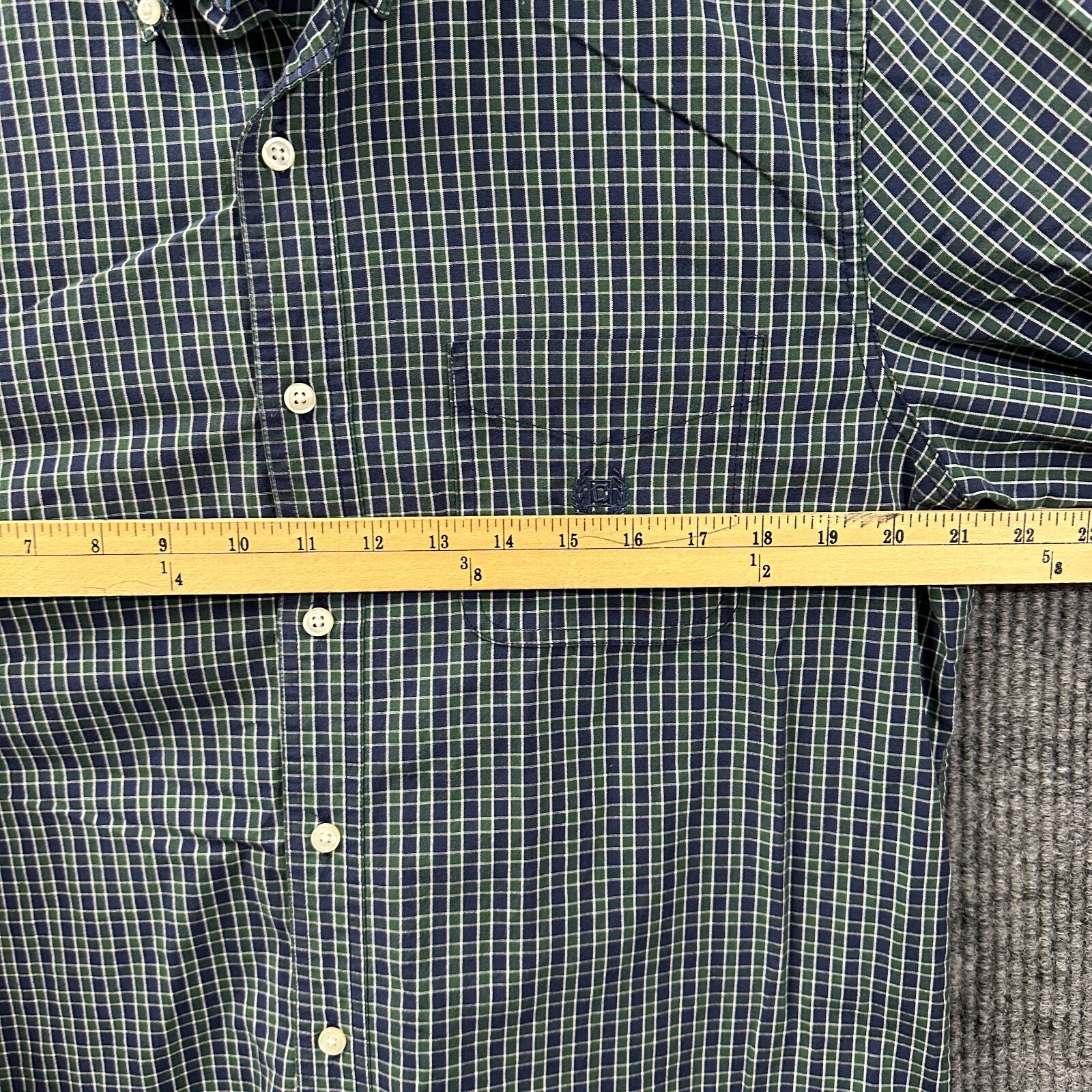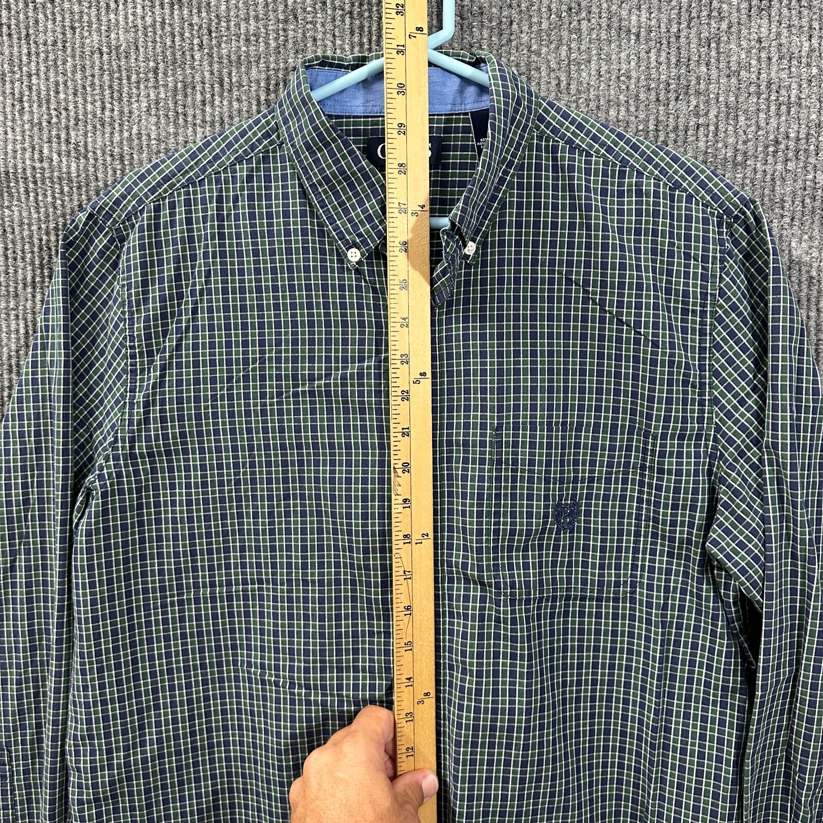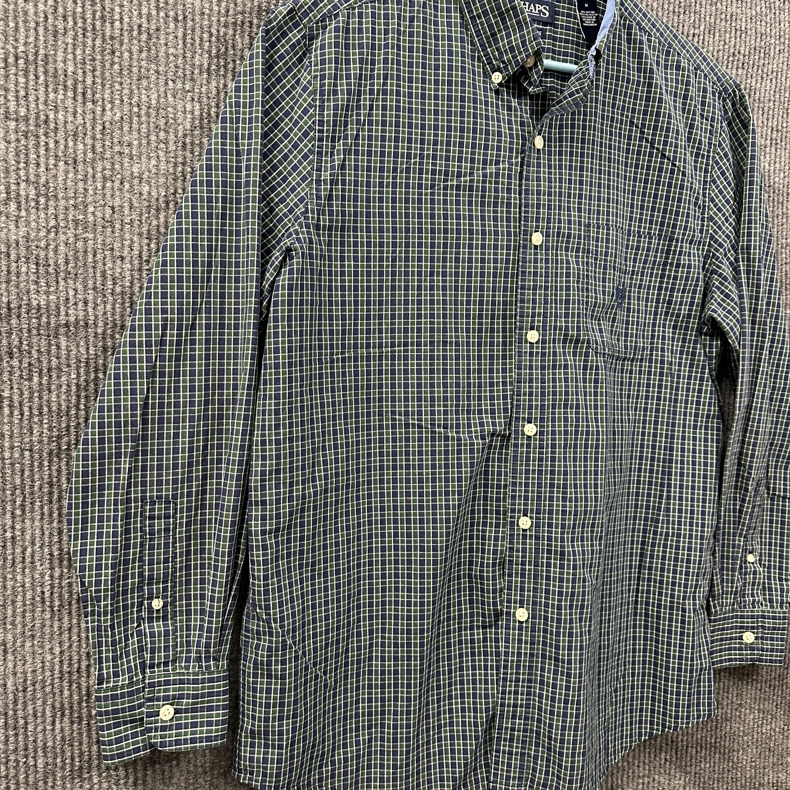 как выглядит Chaps Mens Button Down Shirt Size M Blue Green Check Easy Care Long Sleeve фото