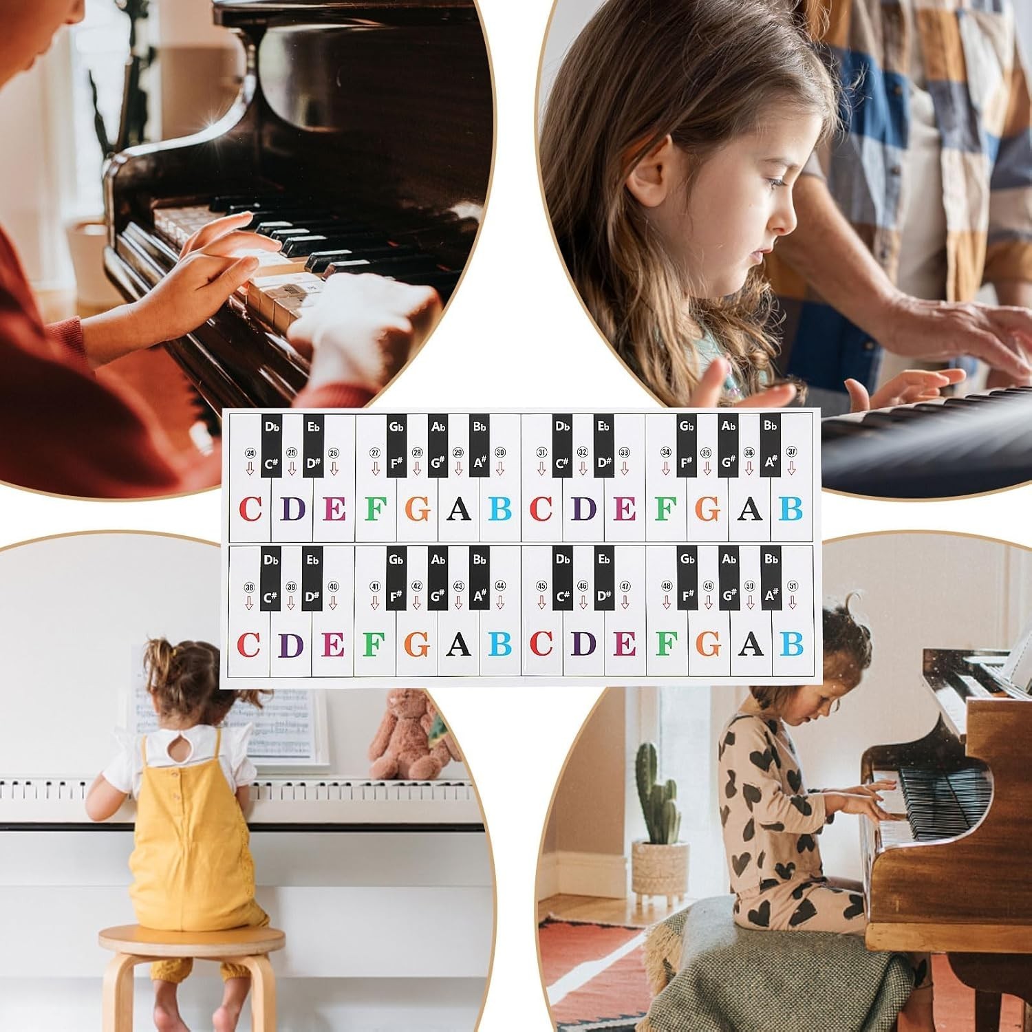 как выглядит Piano Keyboard Stickers for 88/61/ 54/49 Key, Colorful Transparent Removable фото