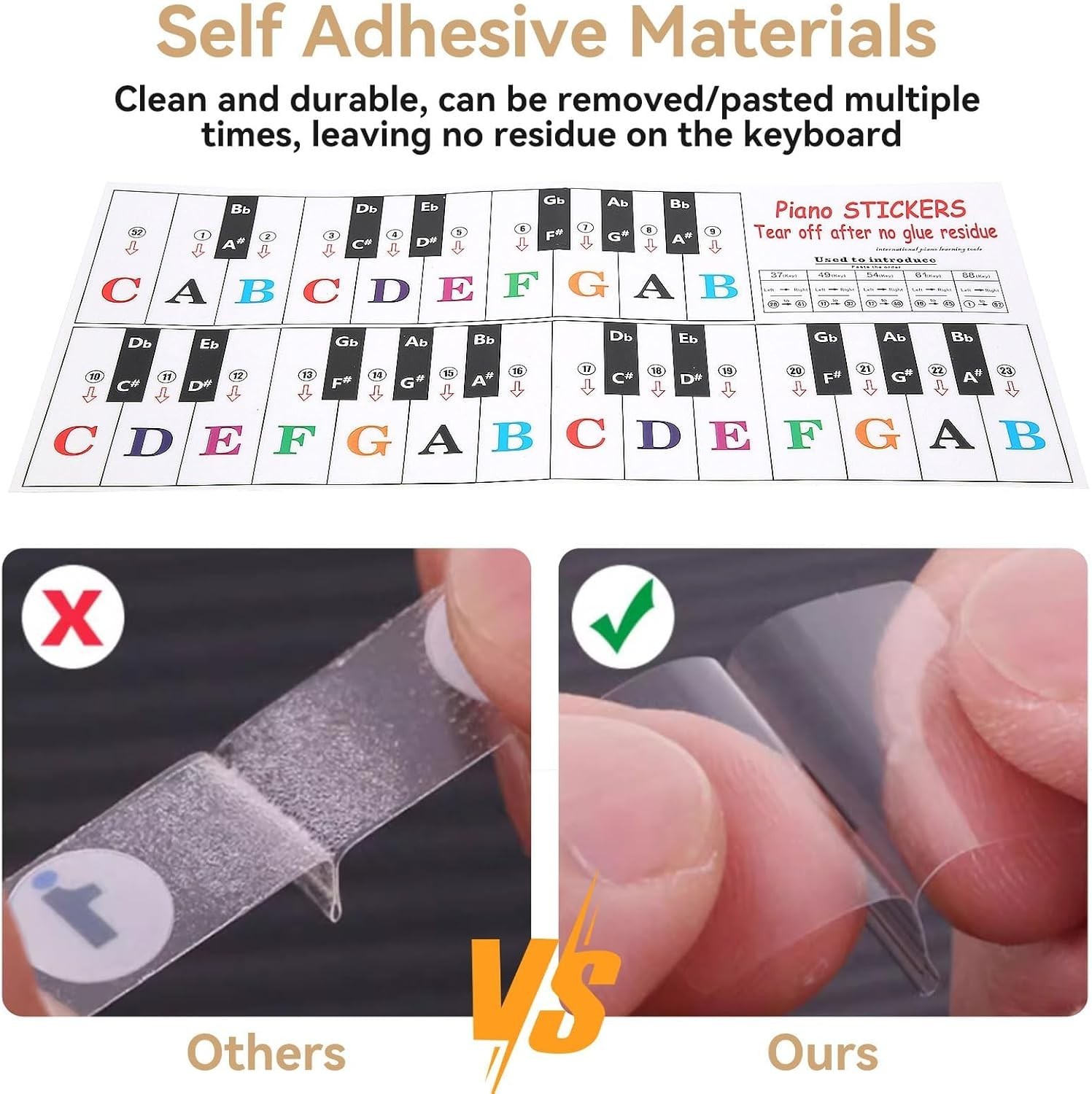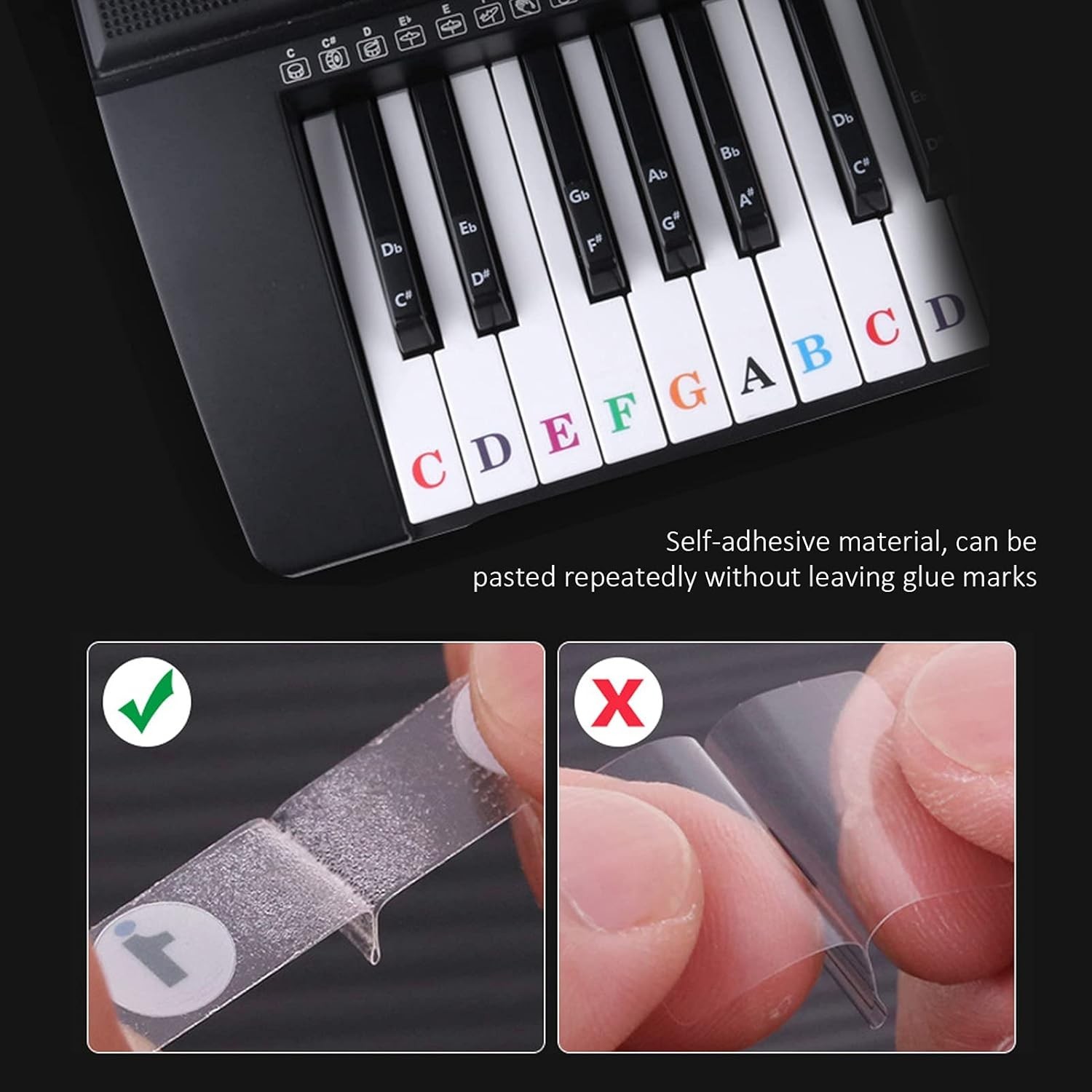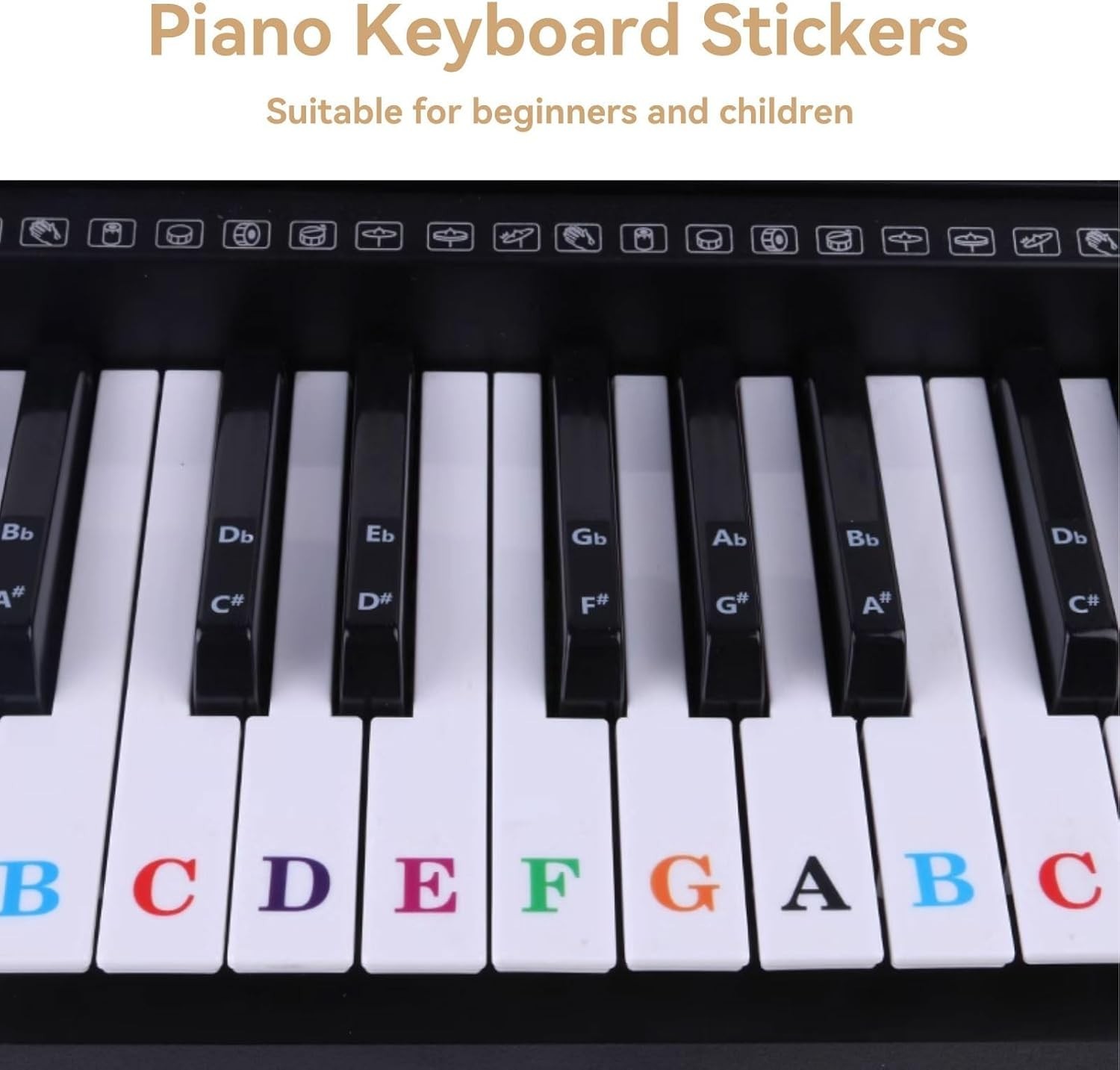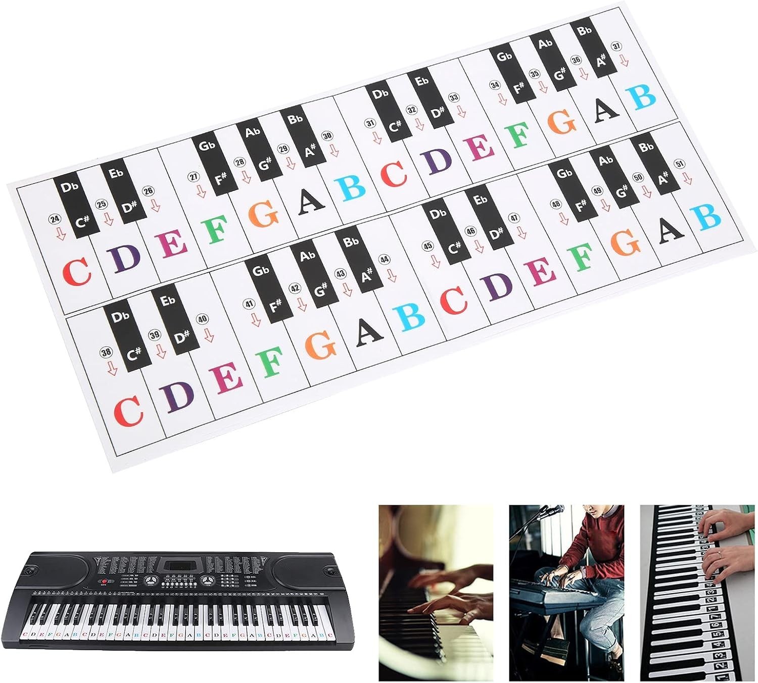 Piano Keyboard Stickers for 88/61/ 54/49 Key, Colorful Transparent Removable