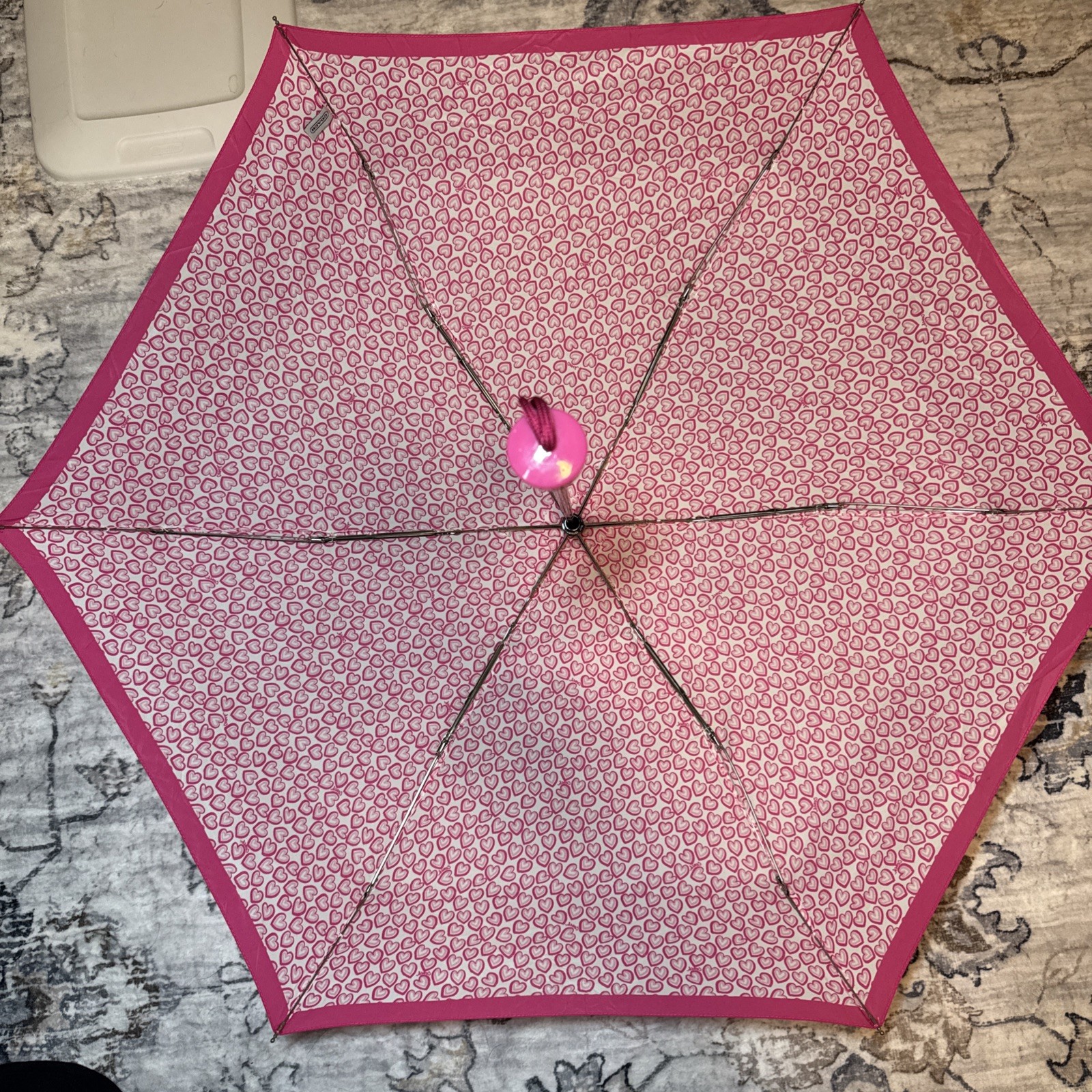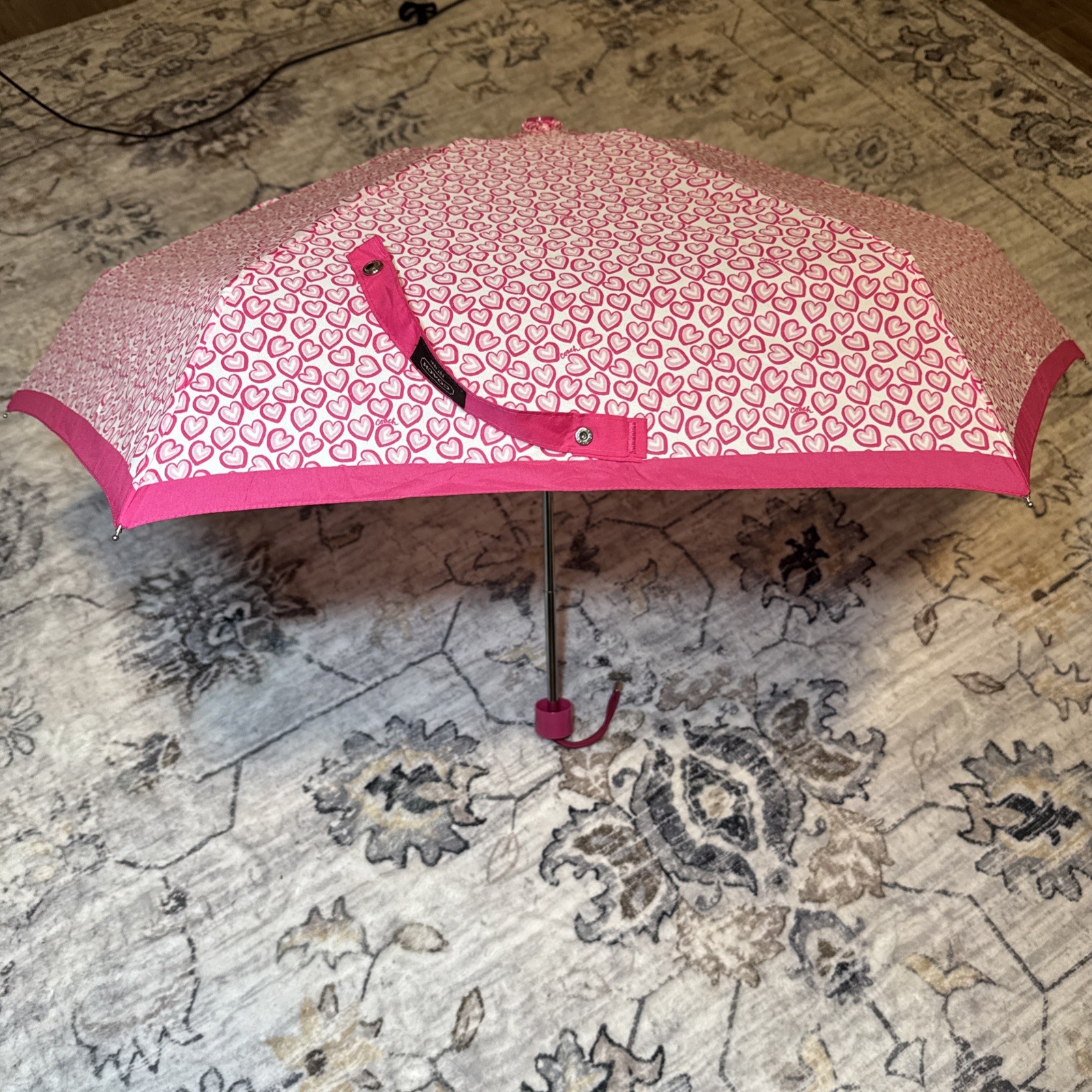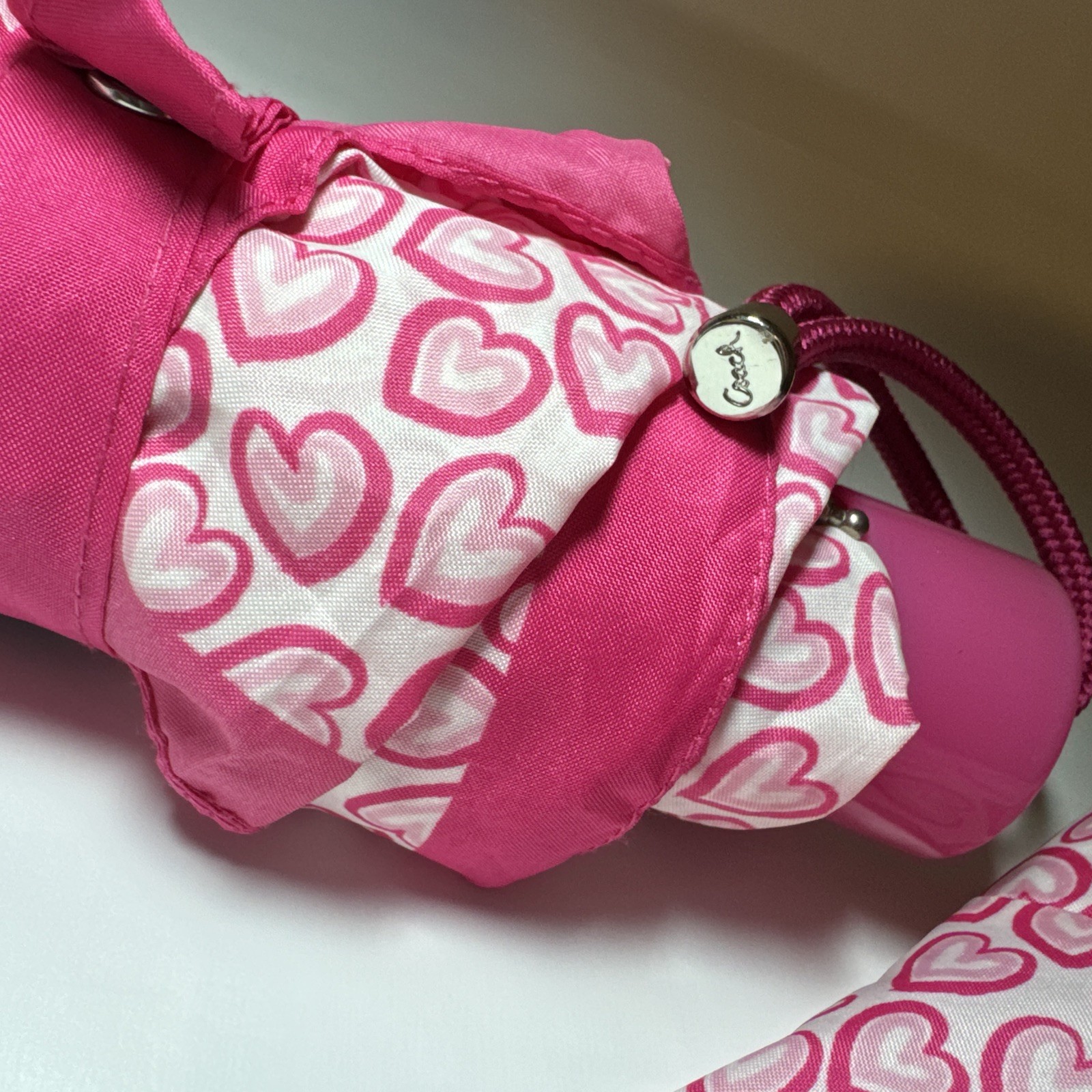 как выглядит Coach Mini Umbrella In Pink Heart Print фото