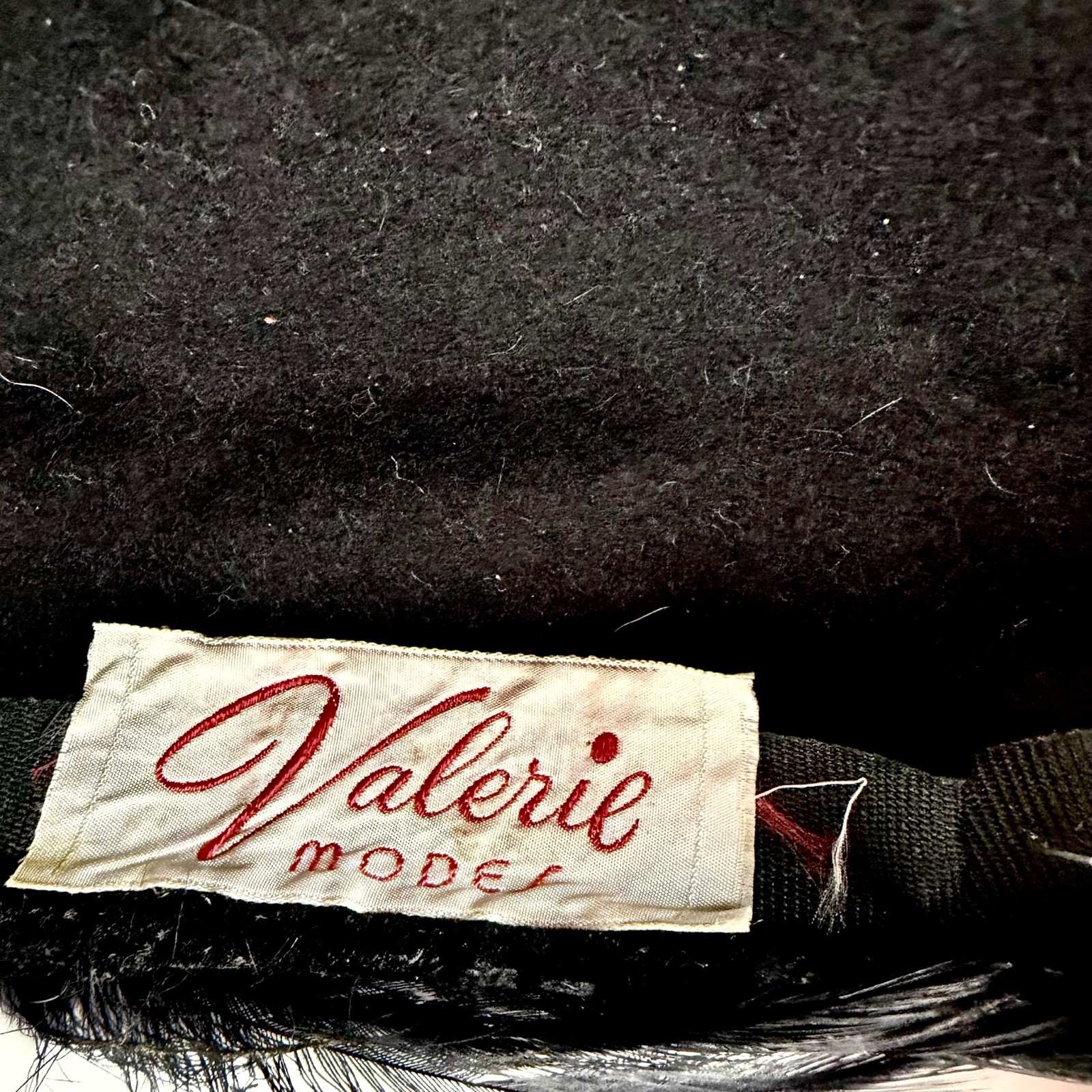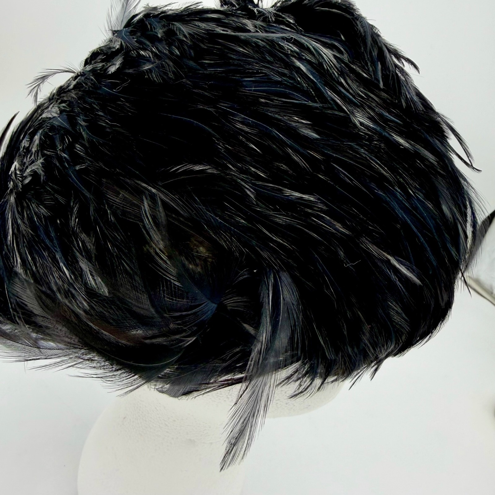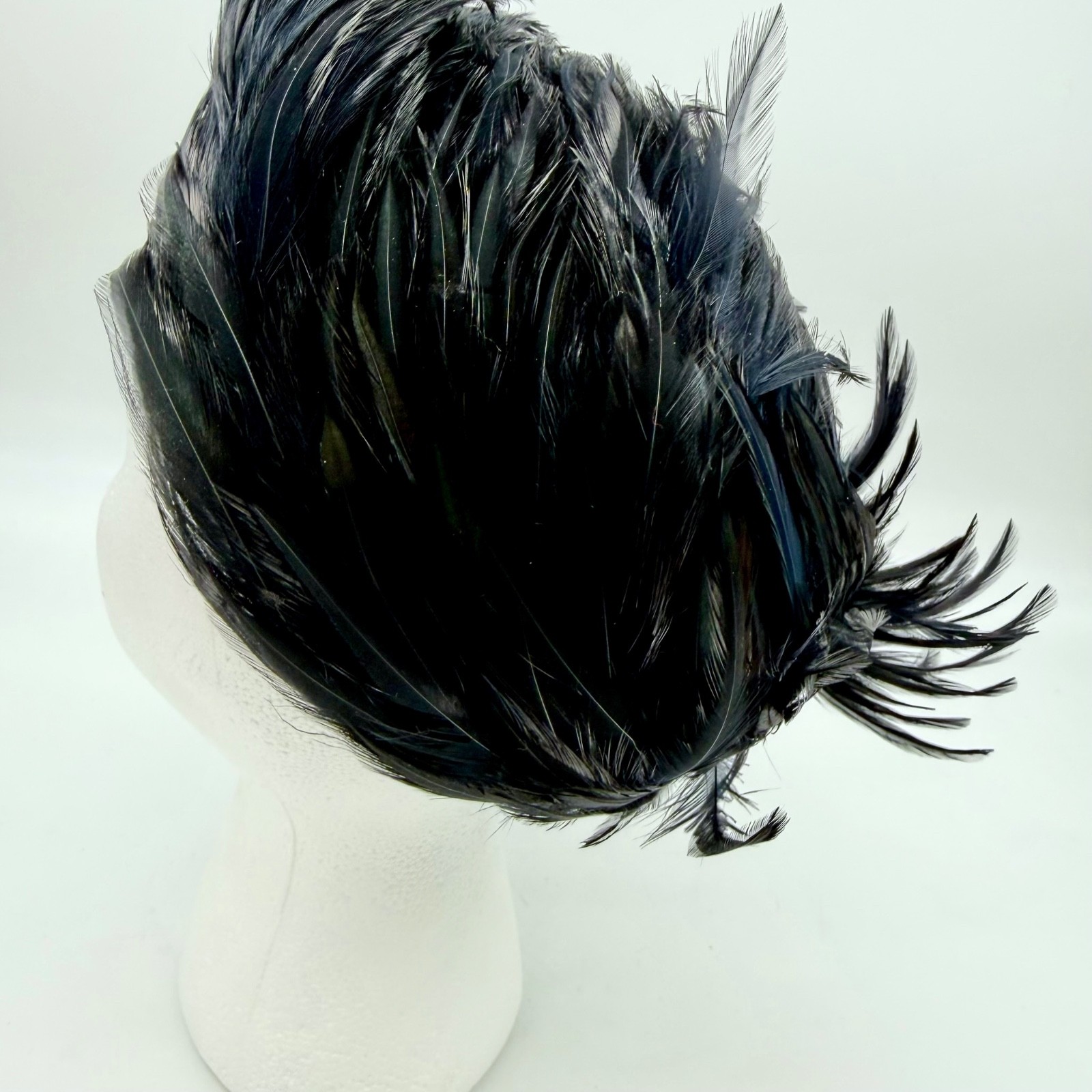 VTG Valerie Modes Black Iridescent Feather Fascinator Hat 1950s Pheasant Cap