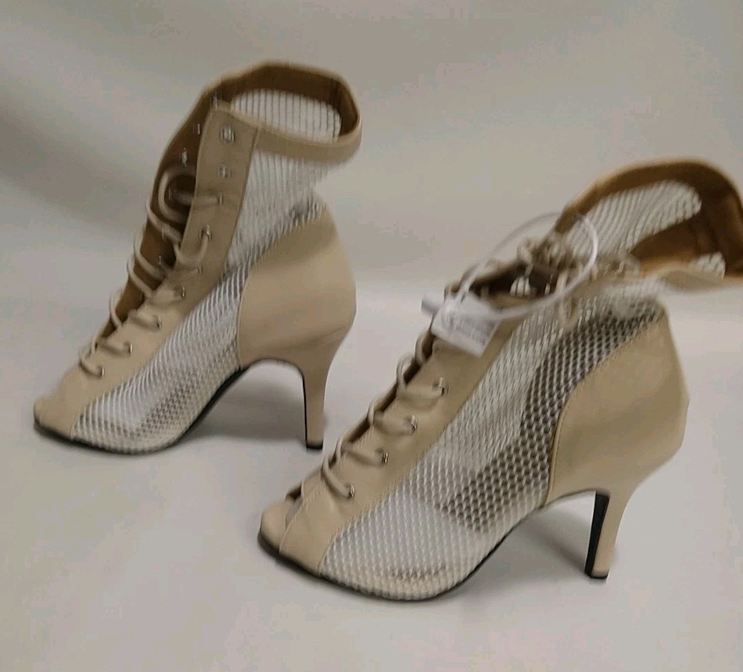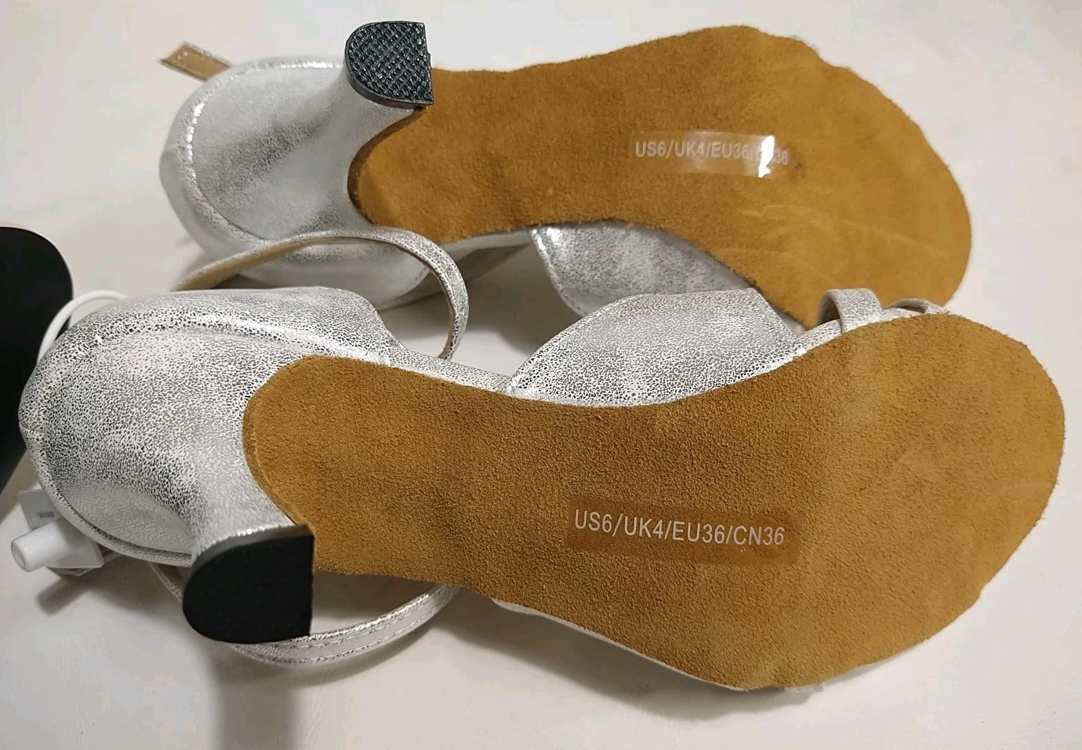 как выглядит 2 Womens Ballroom Latin Dance Shoes Open Toe High Heels Silver Cream US Size 6 фото