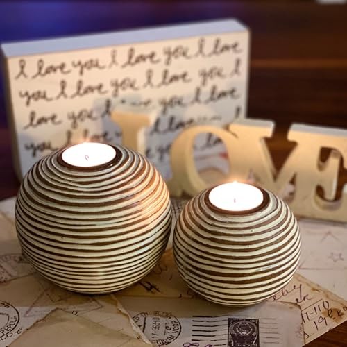 Tuva Orb Candle Holders Gift Boxed Set of 2 , Table Light Brown and White