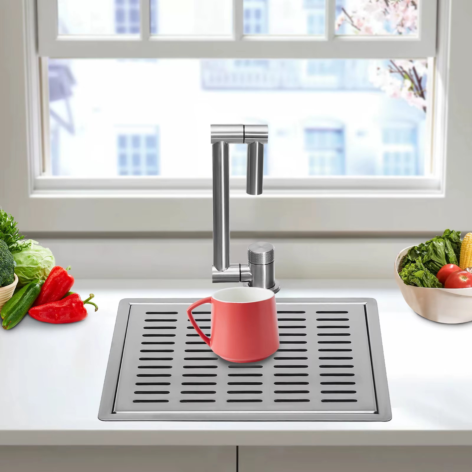 как выглядит 304 Stainless Steel Sink 28.96 33.02 2.56Cm Kitchen Vegetable Washing Sink 360 фото