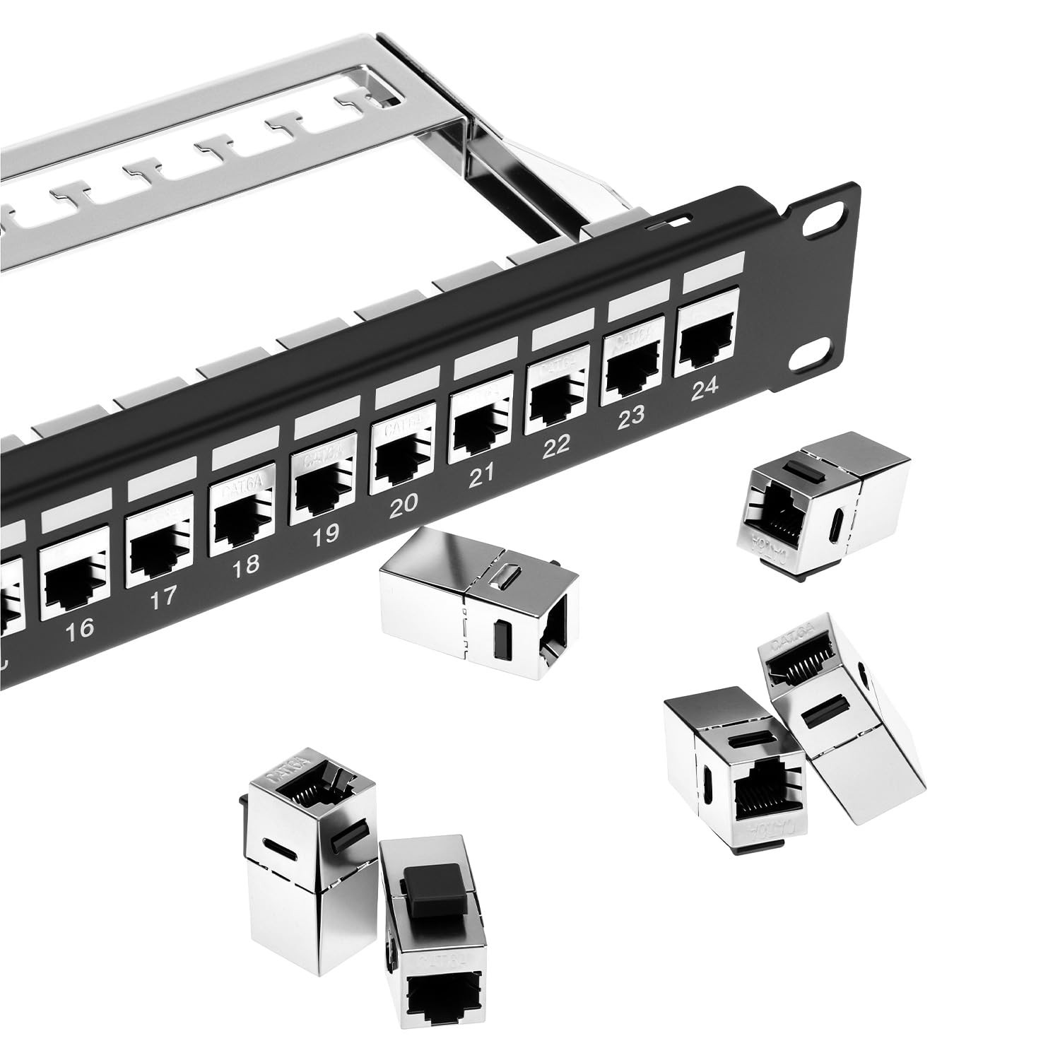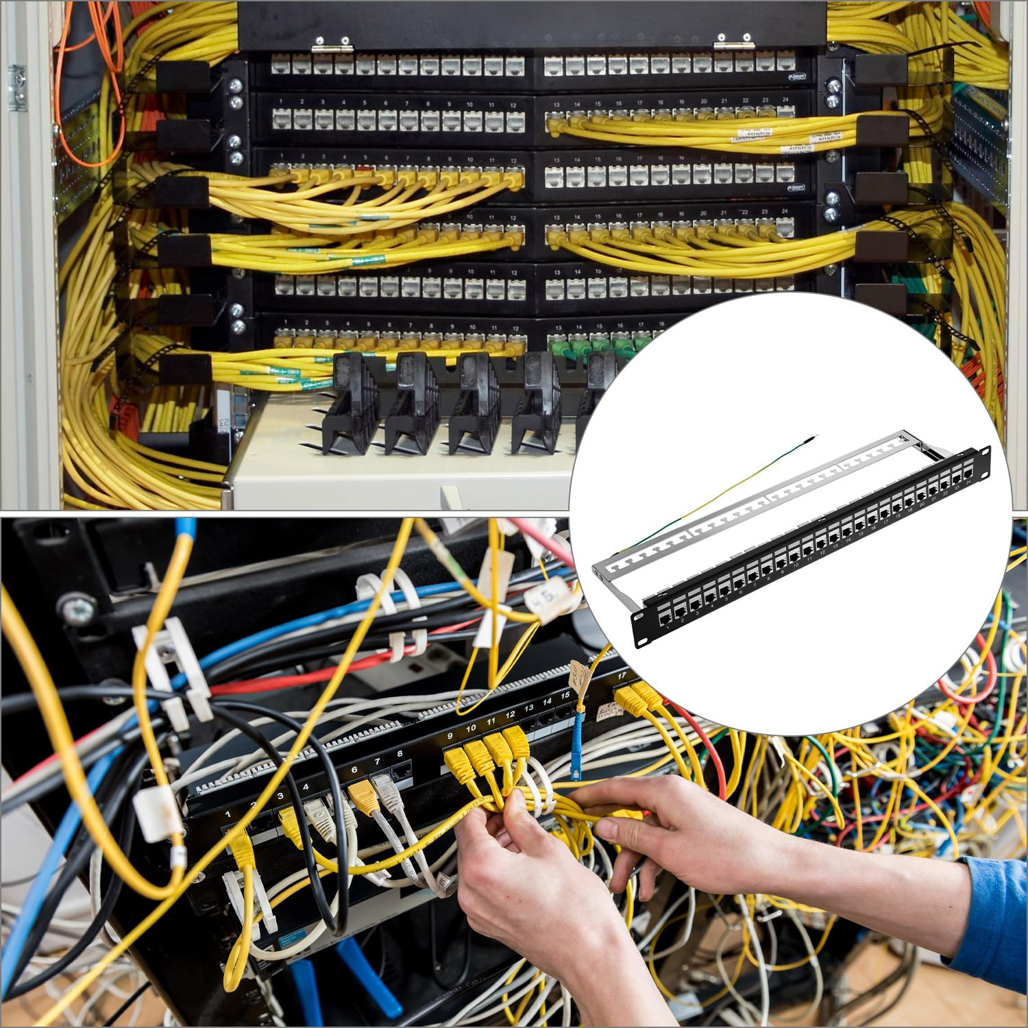 24 Port Cat6A 10G Shielded Patch Panel 1U 19in Toolless w Back Bar for Cat7 Cat6