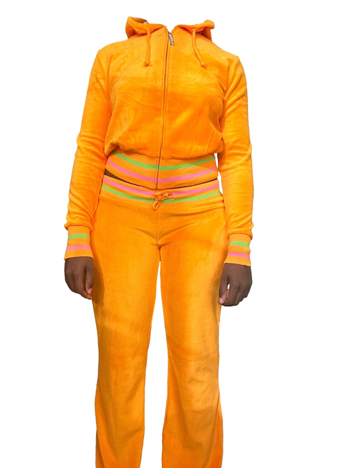 Y2K Orange Velour Tracksuit Set, Size Small Jacket Large Bottoms