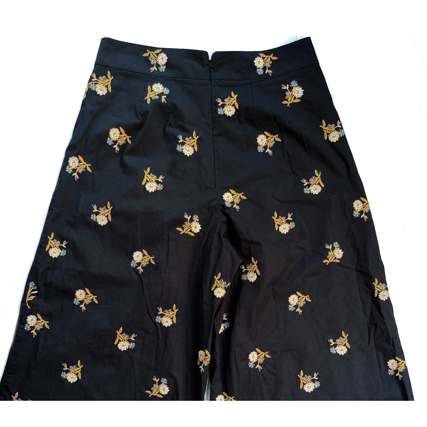 как выглядит Veronica Beard Mazum Flora-Embroidered Wide Leg Pant Size 4 Black-Multi фото
