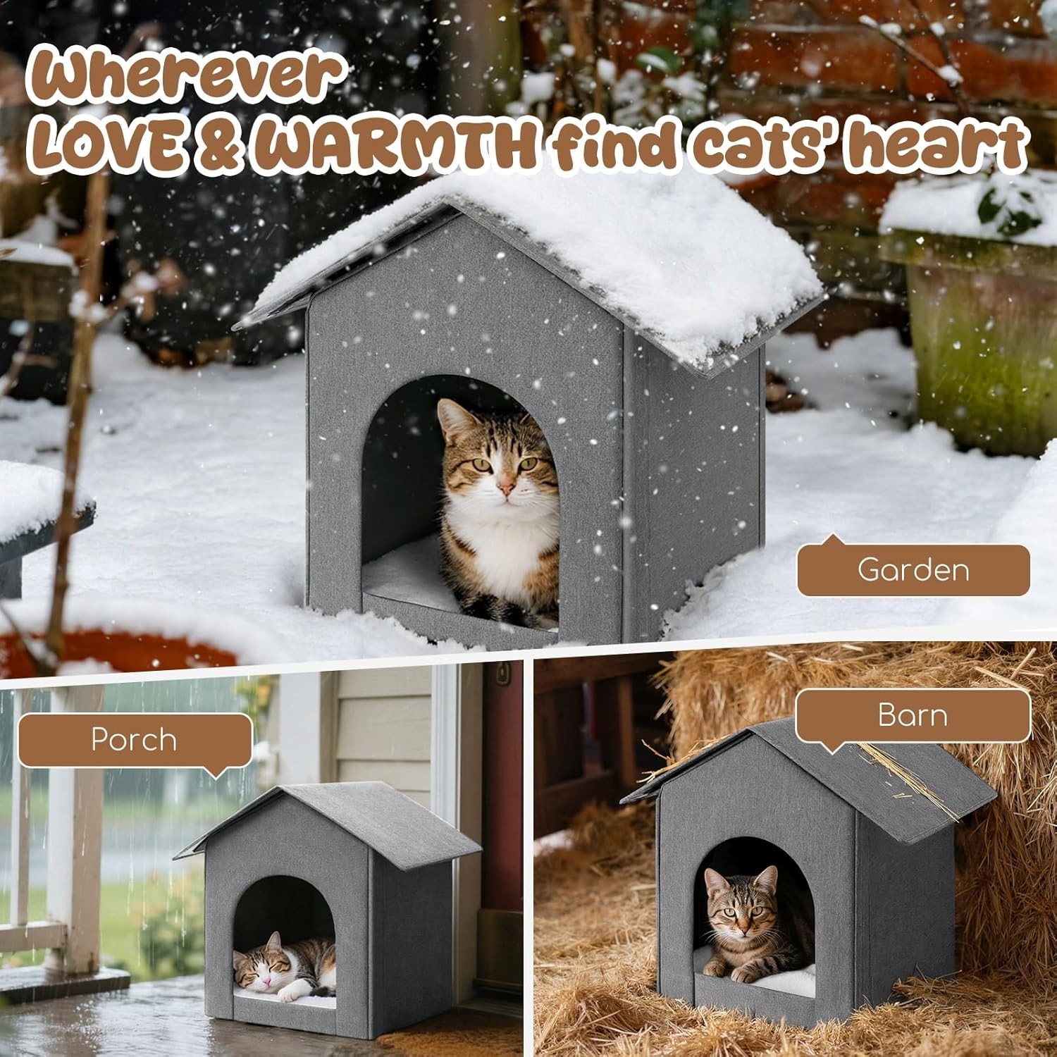 Outdoor Cat House Weatherproof, Insulated Cat Houses For Outdoor Indoor Cat Grey