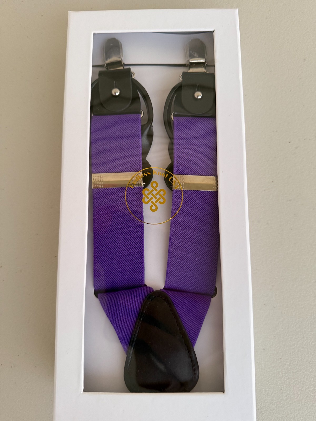 endless Knot elastic adjustable suspenders with bow tie/Purple