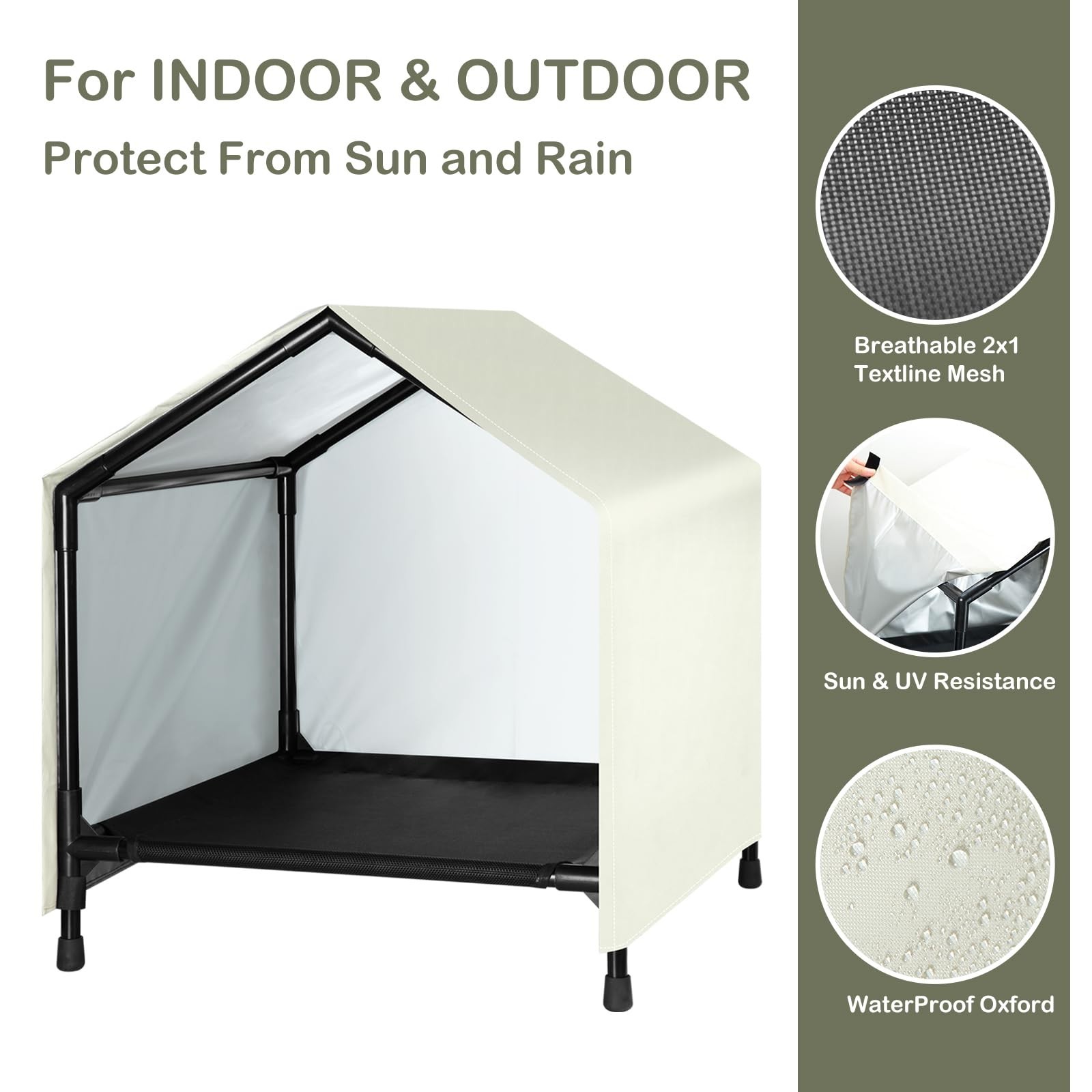 Indoor Outdoor Dog House Elevated Dog Bed with Canopy for Small Medium Dogs...
