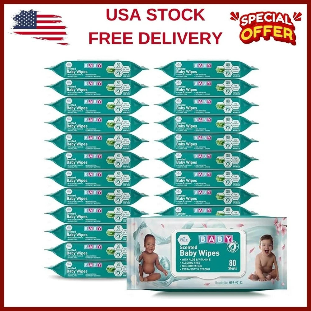 Scented Baby Wipes Packs in Bulk, 1920 Count 24 Packs X 80 Wipes , Extra Soft,