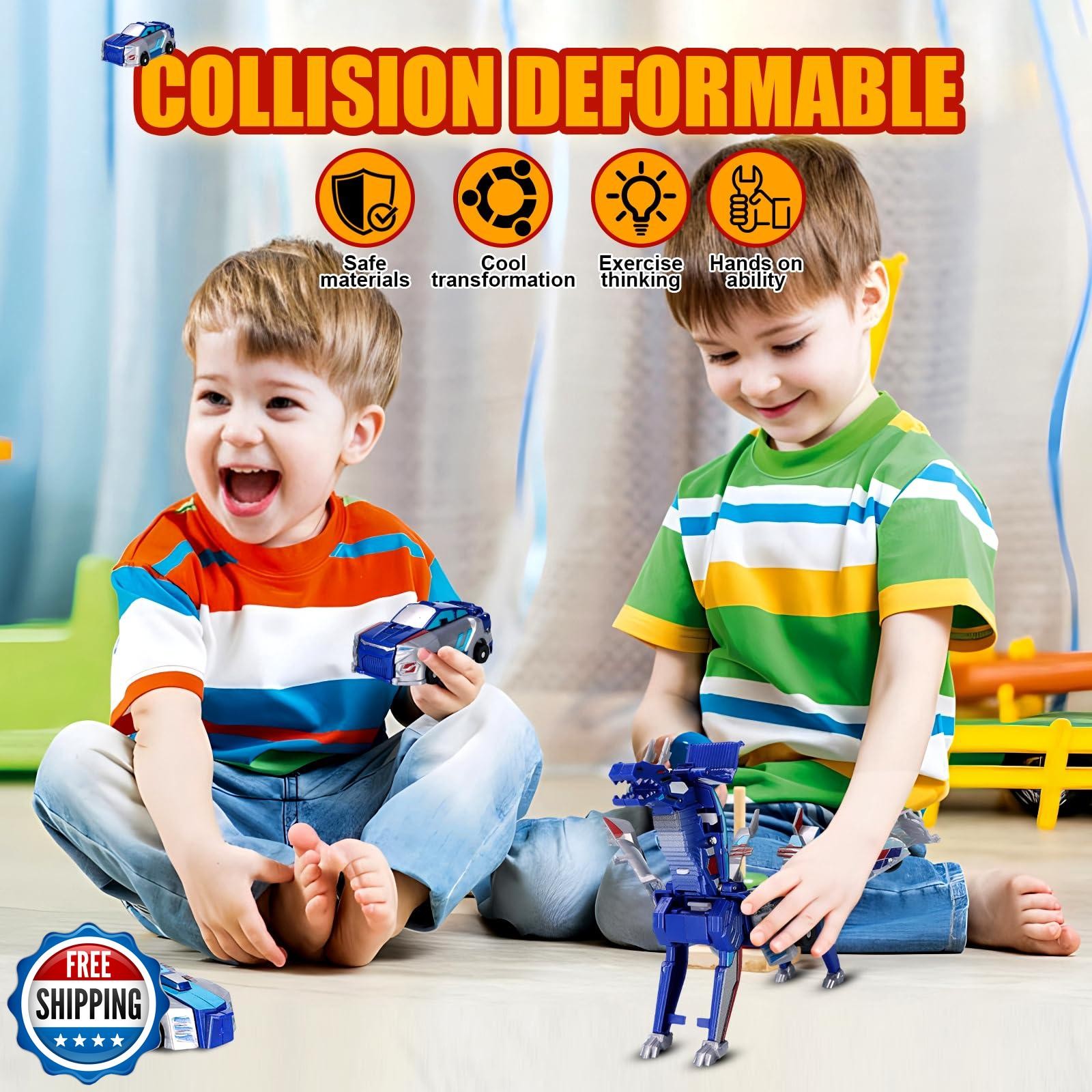 Collision Transforming Dinosaur Car Toy, Magnetic Dinosaur Transformer Car fo