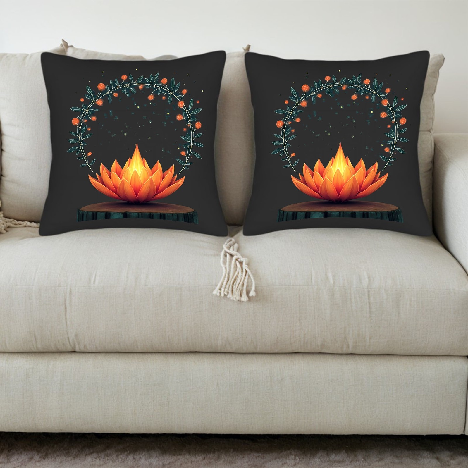 Set of 2 18x18in Throw Pillow Covers - Vibrant Orange Flower with Green Leaves