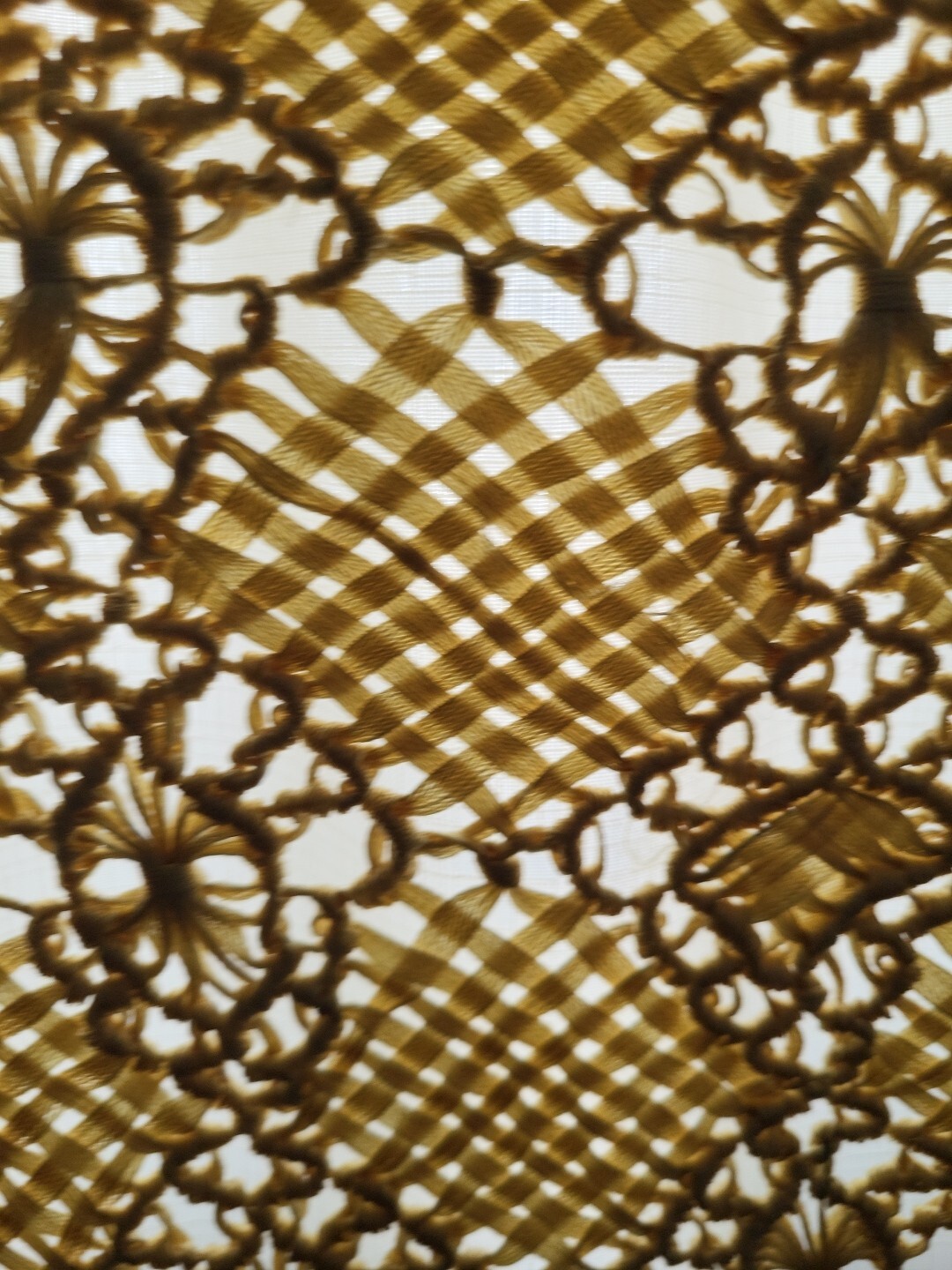 как выглядит vtg Triangular handwoven Shawl Knotted Flax Gold Yellow Creme Brulee Shade фото