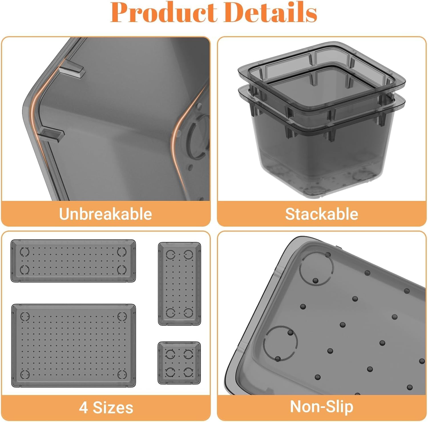 15 PCS Clear Plastic Drawer Organizer Set, 4-Size Acrylic Drawer Storage Trays,