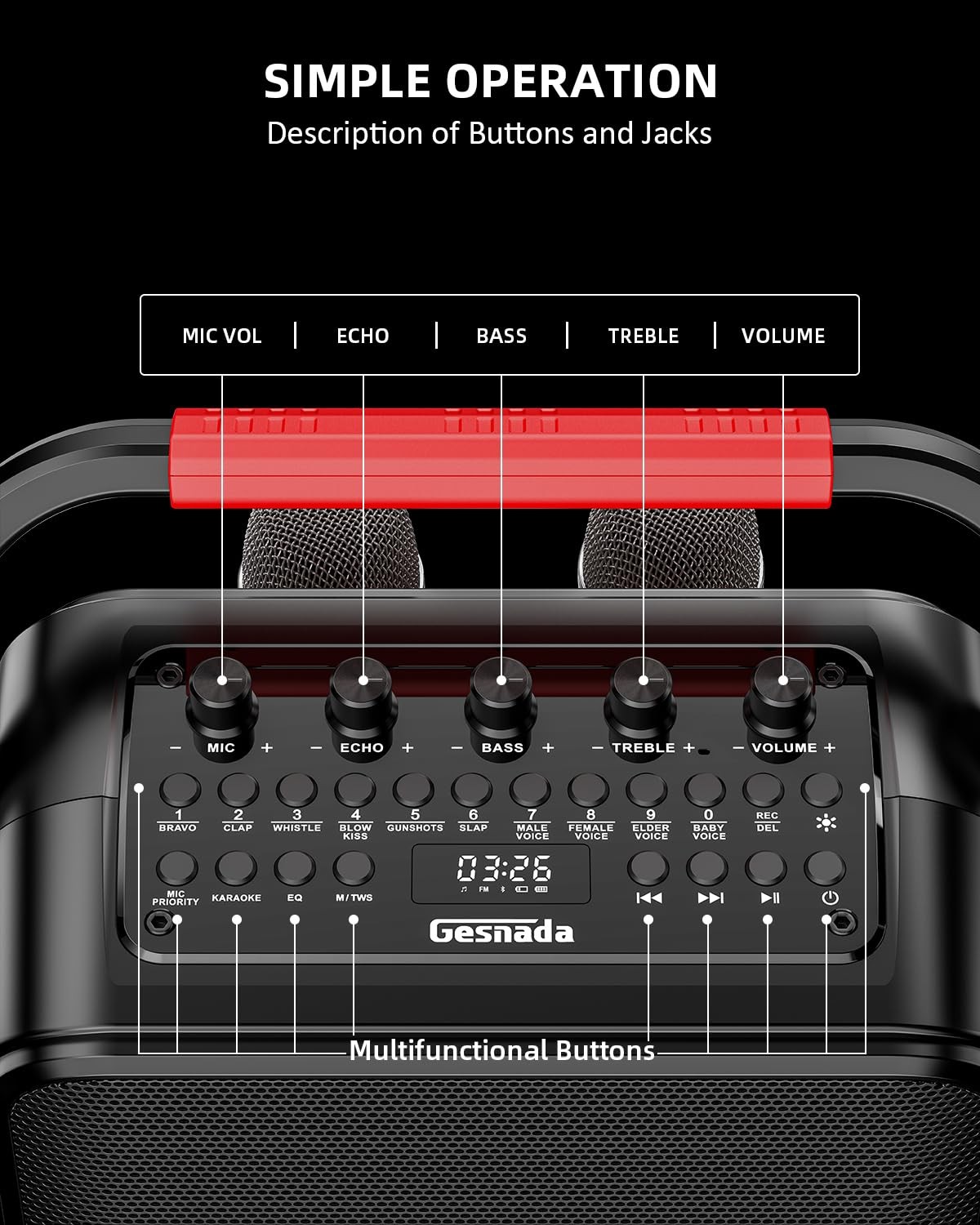 как выглядит Karaoke Machine for Adults Kids with Full-Screen LED Lights, Portable BT Sp... фото